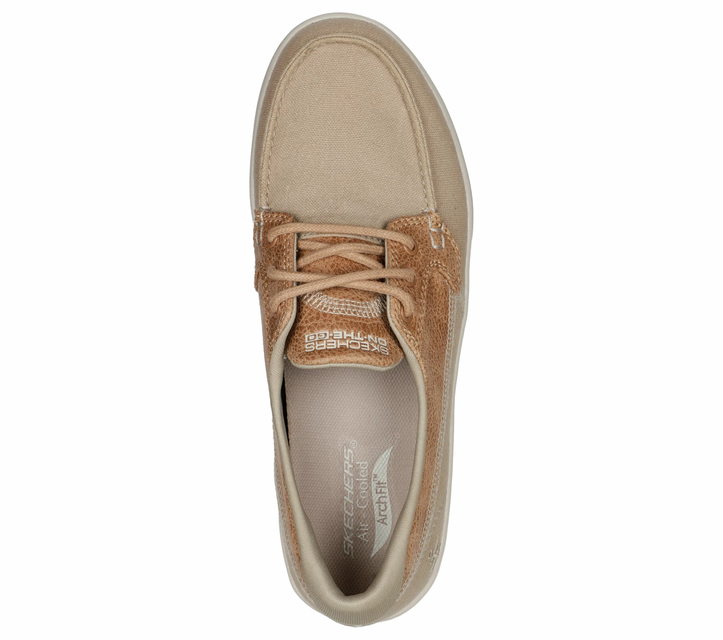 Nautical style and all-day comfort combine in Skechers Arch Fit® Uplift – Cruise’n By. This beach inspired pull-on features a canvas upper with adjustable laces, a removable Arch Fit® insole and lightweight ULTRA GO® cushioning.