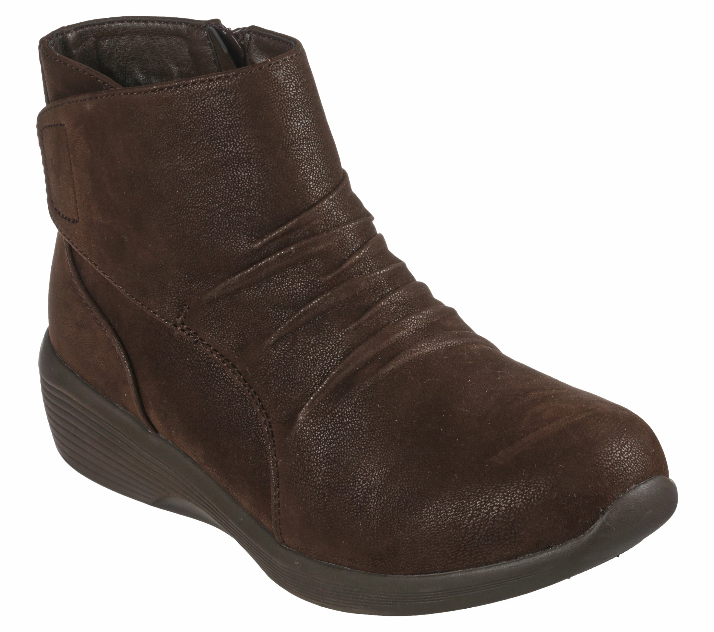 Bring style into the season with Skechers Arya – Fresh Trick. This dress casual comfort ankle boot features a synthetic microleather fabric upper, Skechers Air-Cooled Memory Foam® insole and a side zip closure.