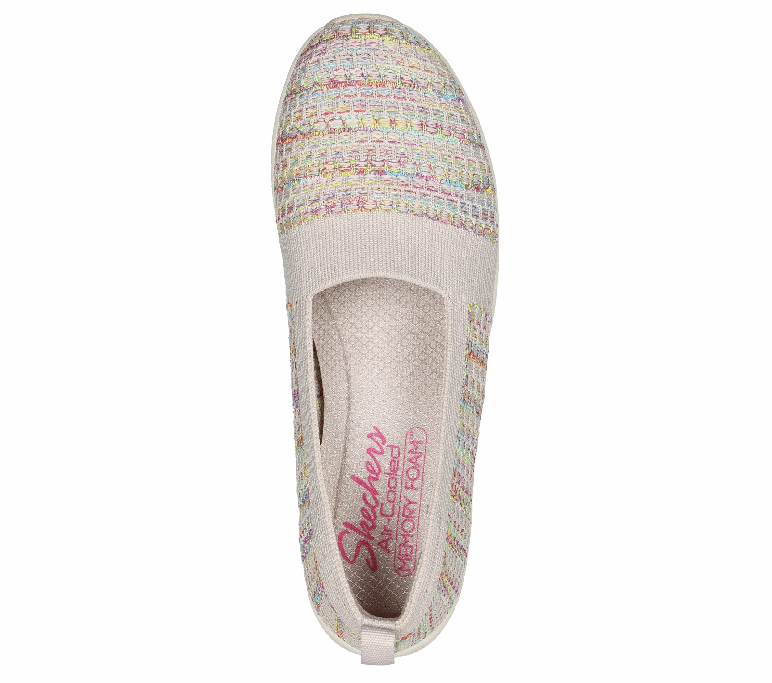 Show you care while staying comfortable and stylish wearing Skechers Be-Cool – Sherbet Skies. This eco-friendly casual flat features a Stretch Fit® breathable basket weave knit upper with a cushioned Skechers Air-Cooled Memory Foam® comfort insole. Our Planet Matters: Good for your feet. Good for the world.