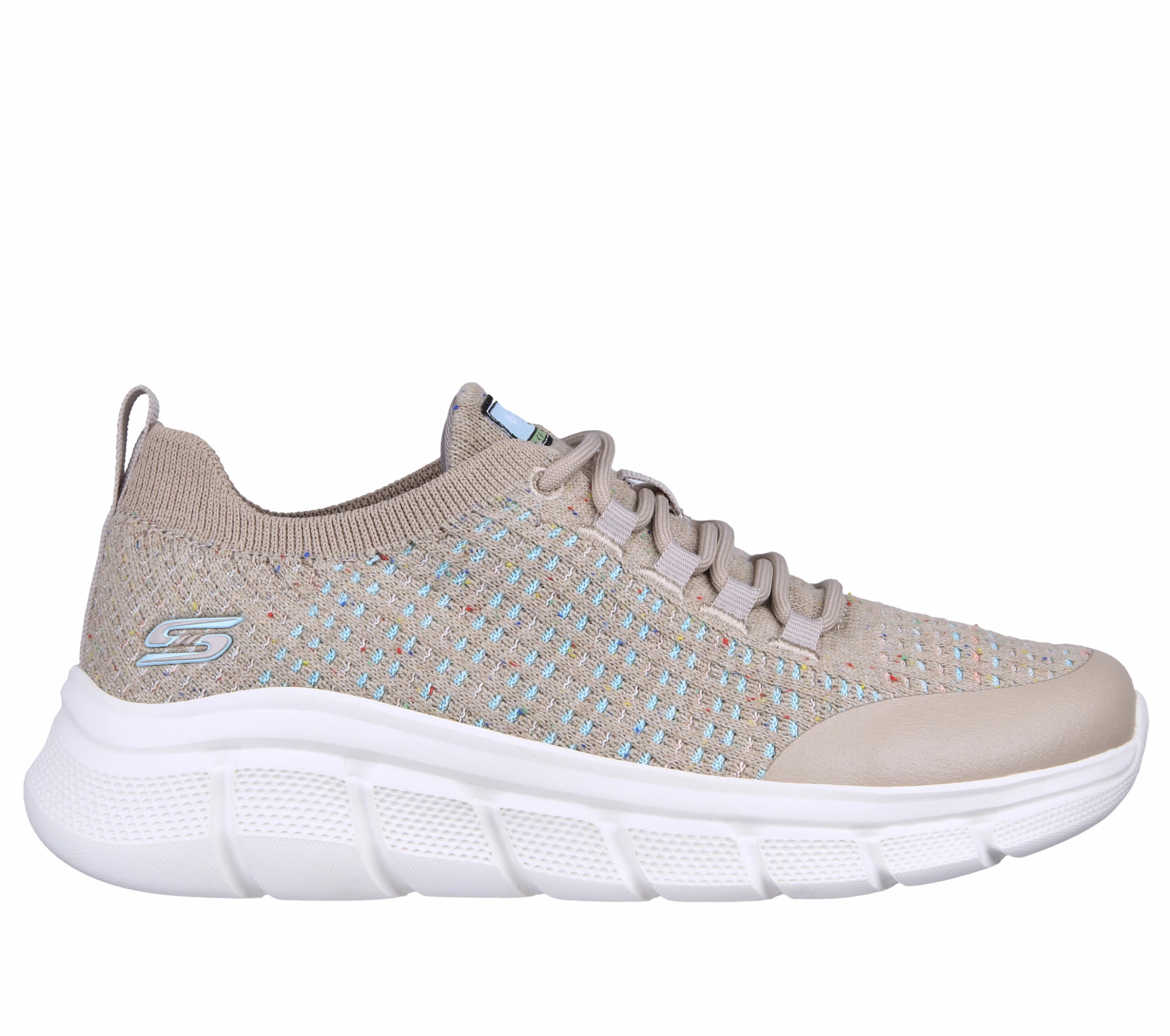 Go green in comfortable and eco-friendly style wearing BOBS from Skechers Sport B Flex – Clean Spirit. Designed with recycled materials, this lace-up features an athletic knit and synthetic upper and a cushioned Skechers Memory Foam insole. Our Planet Matters: Good for your feet. Good for the world.