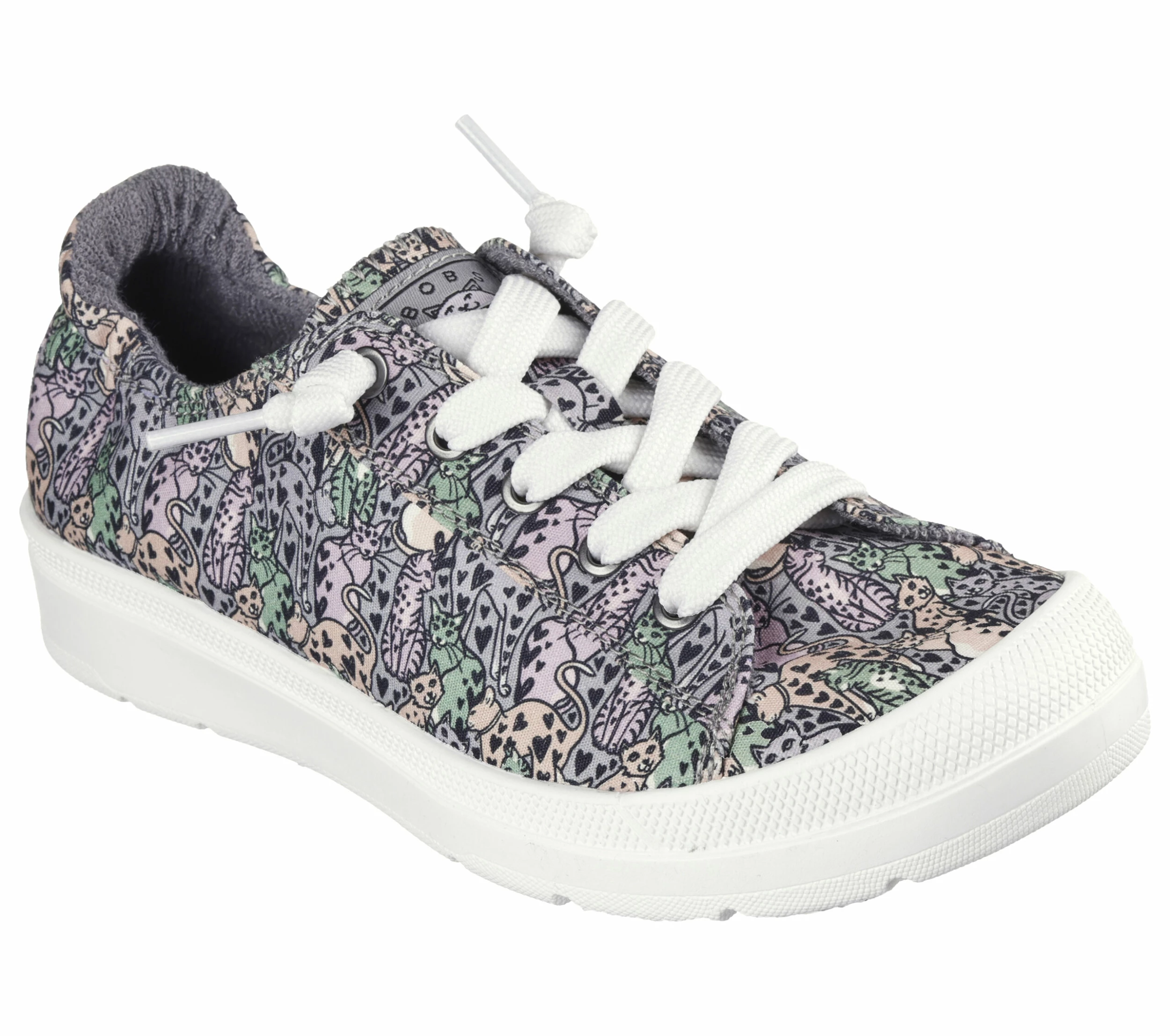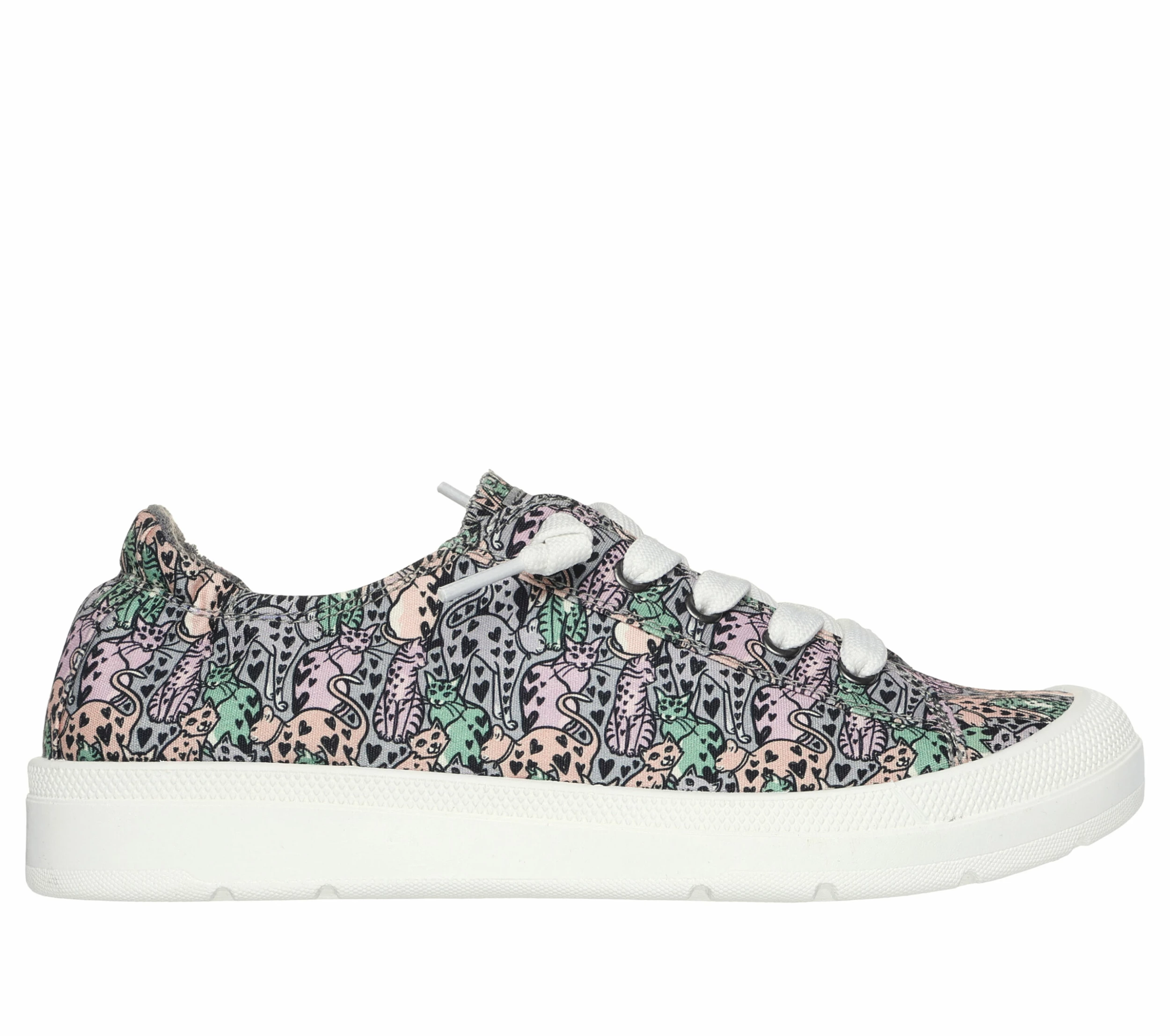 Purrrfect style and comfort make a perfect pair in BOBS from Skechers BOBS Beyond – Just Kitten. This casual design features a cat print canvas upper with a pull-on style with faux laces and a cushioned Skechers Memory Foam insole. For every BOBS purchase, a donation is made to animals in need.