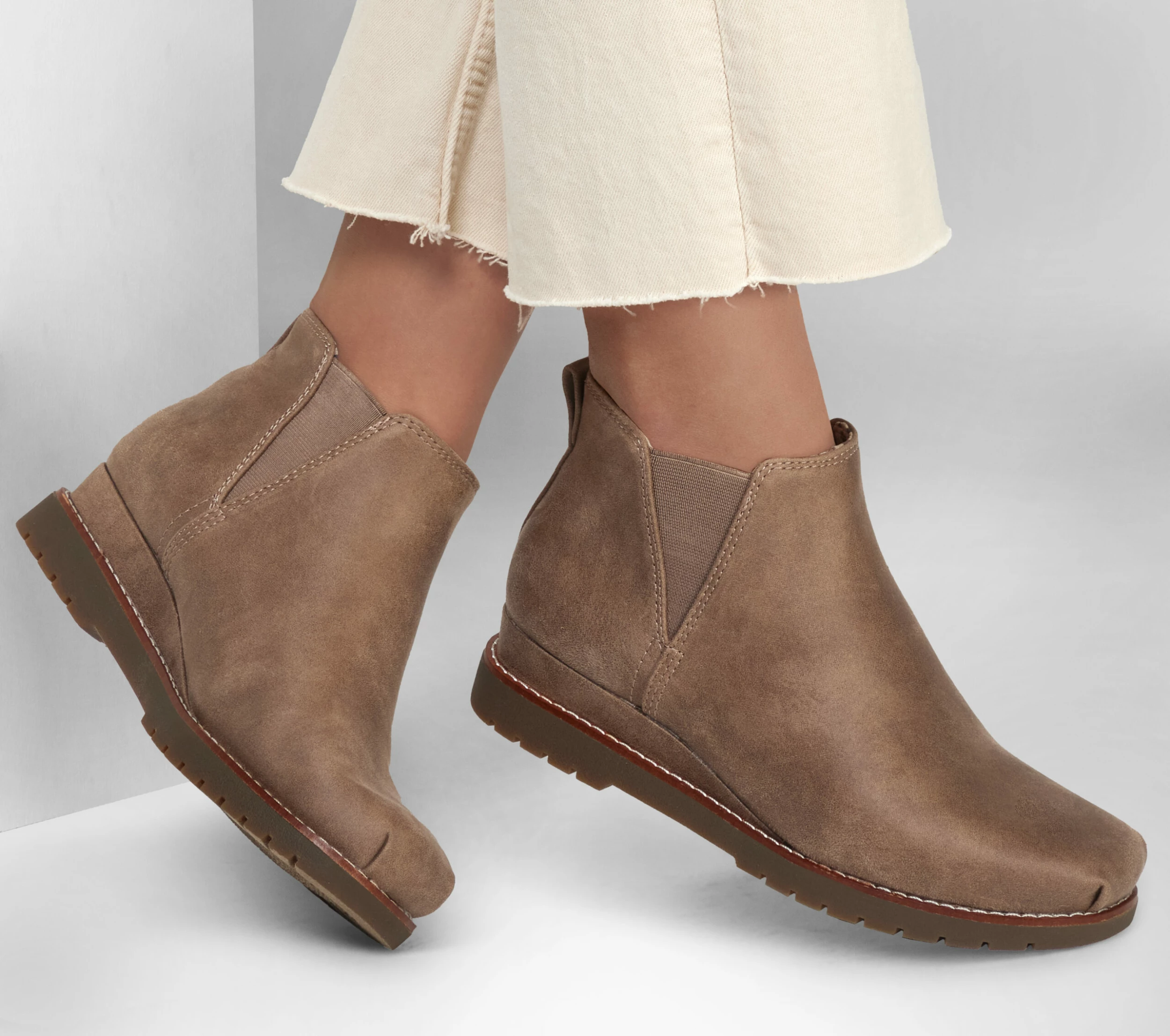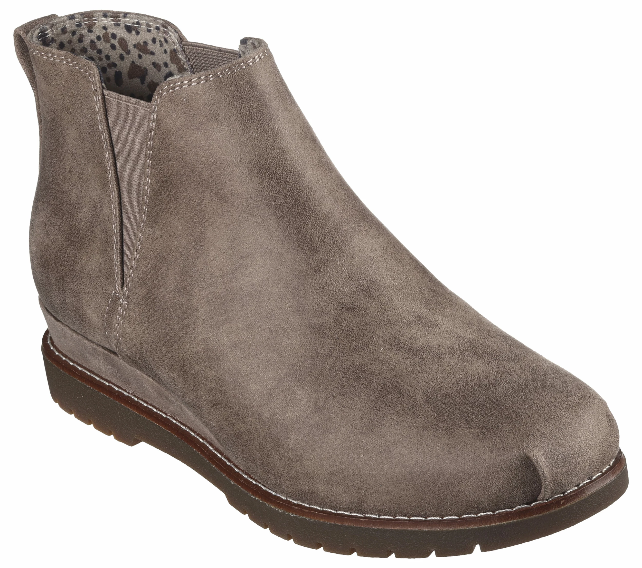 Enjoy natural good looks with modern comfort wearing BOBS from Skechers Chill Wedge – Cruising Altitude. This chelsea style pull-on boot features a microfiber faux leather upper with twin gore panels, animal print lining, wedge heel, and Skechers Memory Foam cushioning. For every BOBS purchase, a donation is made to animals in need.