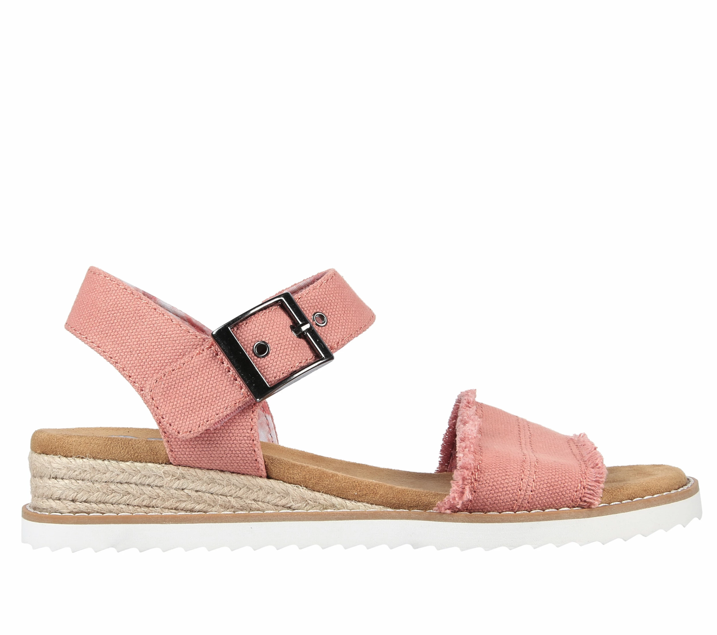 Get styled for fun under the sun with the BOBS from Skechers Desert Kiss – Adobe Princess sandal. This strappy comfort sandal features a canvas upper with frayed details and a cushioned Memory Foam footbed. For every BOBS purchase, a donation is made to animals in need.