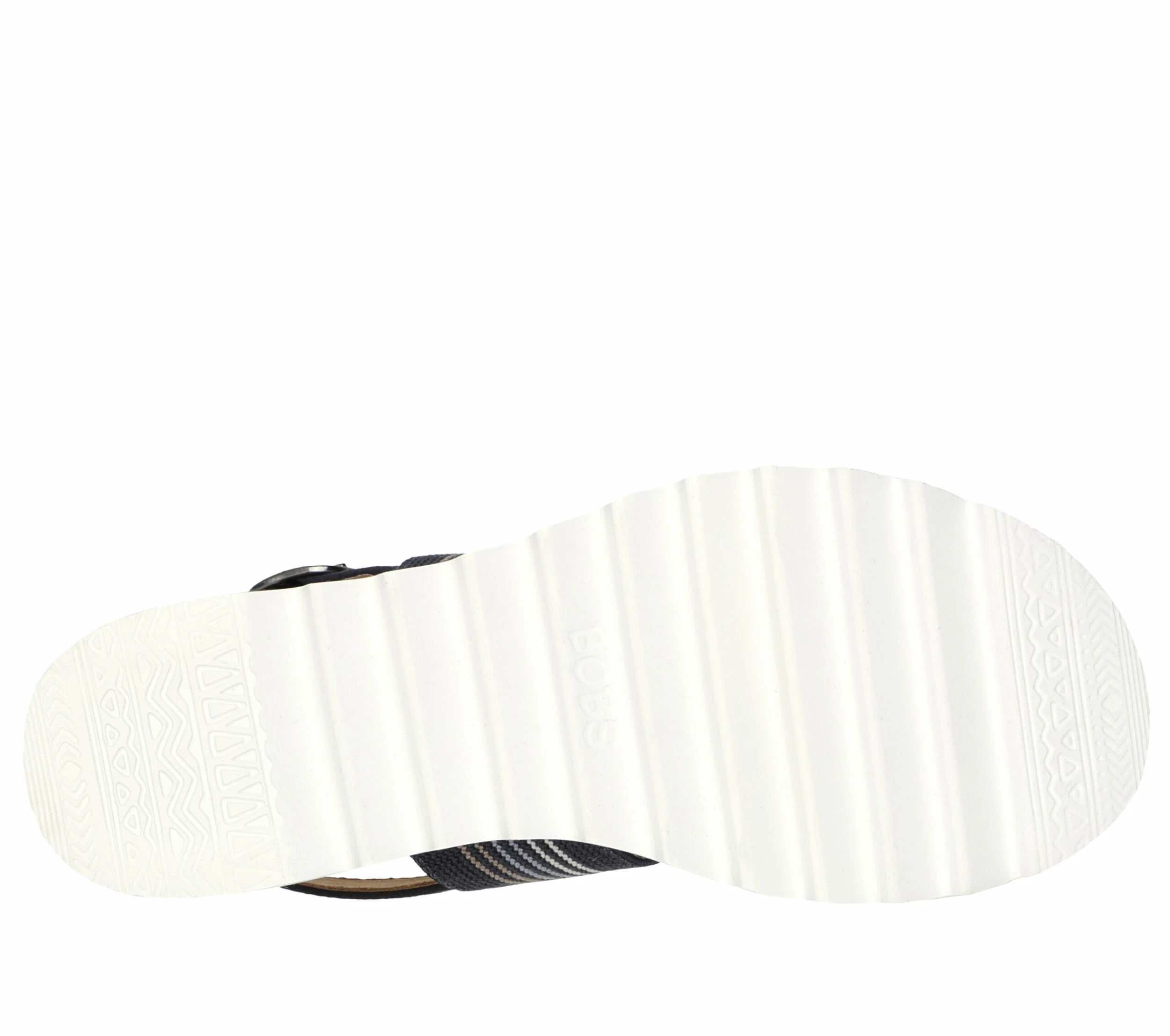 Style in breezy style and comfort with BOBS from Skechers Desert Kiss Hi – Tea Time. This strappy comfort sandal features a striped woven fabric upper with a cushioned Skechers Memory Foam footbed. For every BOBS purchase, a donation is made to animals in need.
