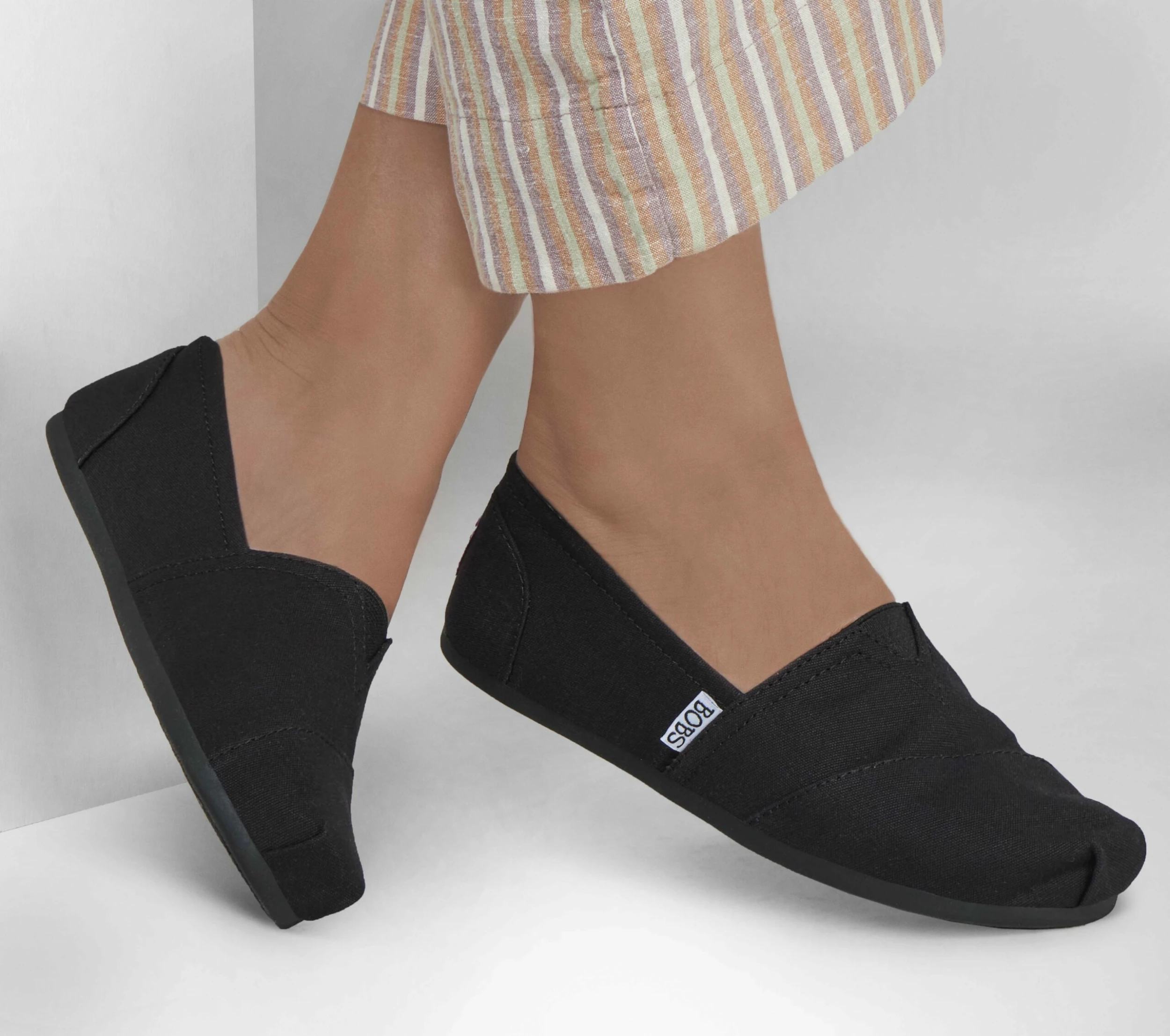 Slip on effortless style and feet-loving comfort with the BOBS from Skechers Plush – Peace and Love shoe. This casual alpargata flat features a canvas upper with a cushioned Memory Foam insole. For every BOBS purchase, a donation is made to animals in need.