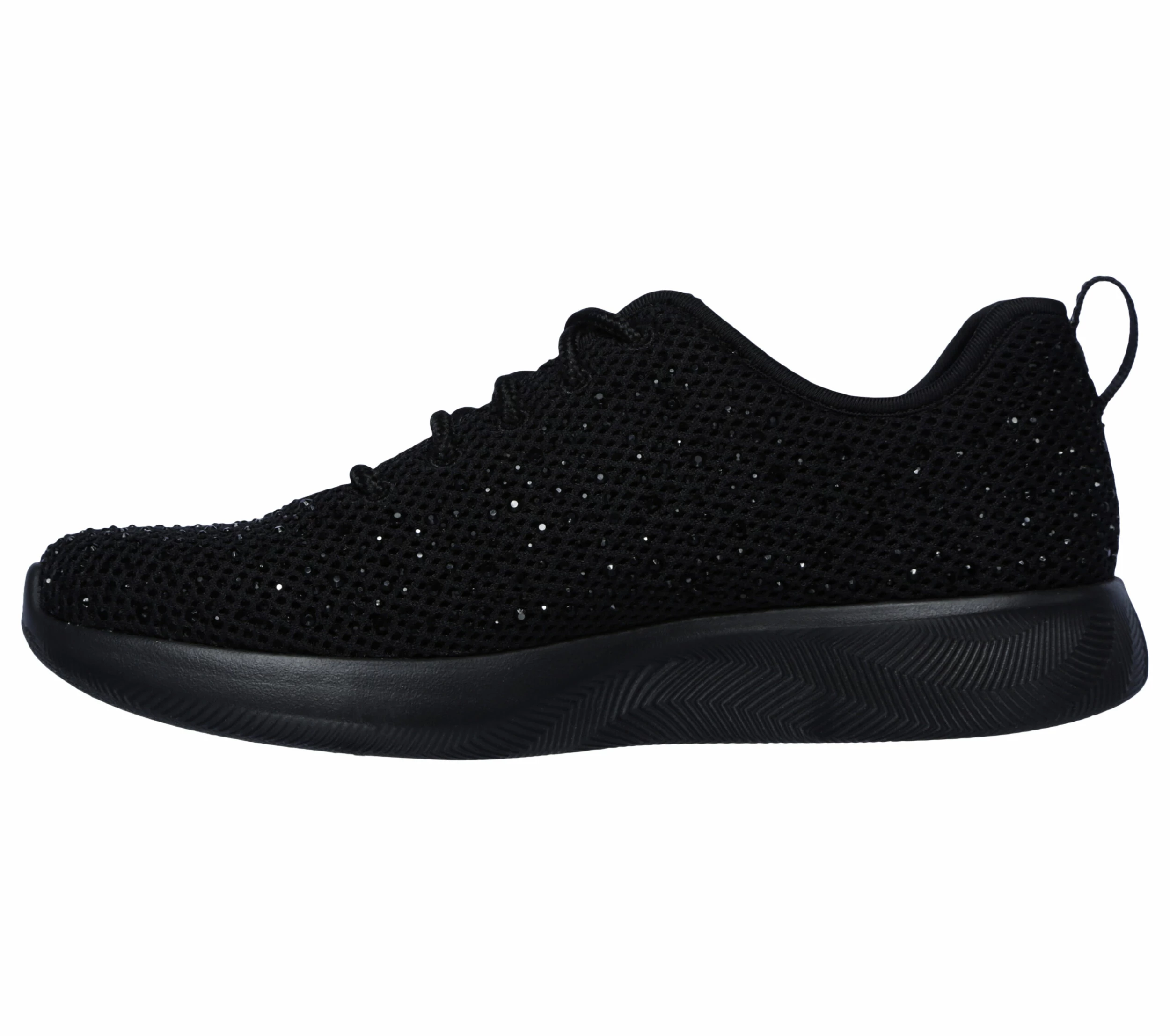 - Rhinestone studded Skech-Knit upper with lace-up front
