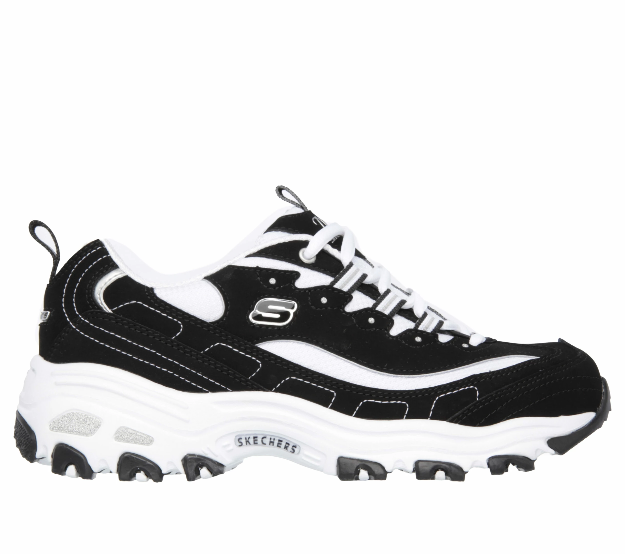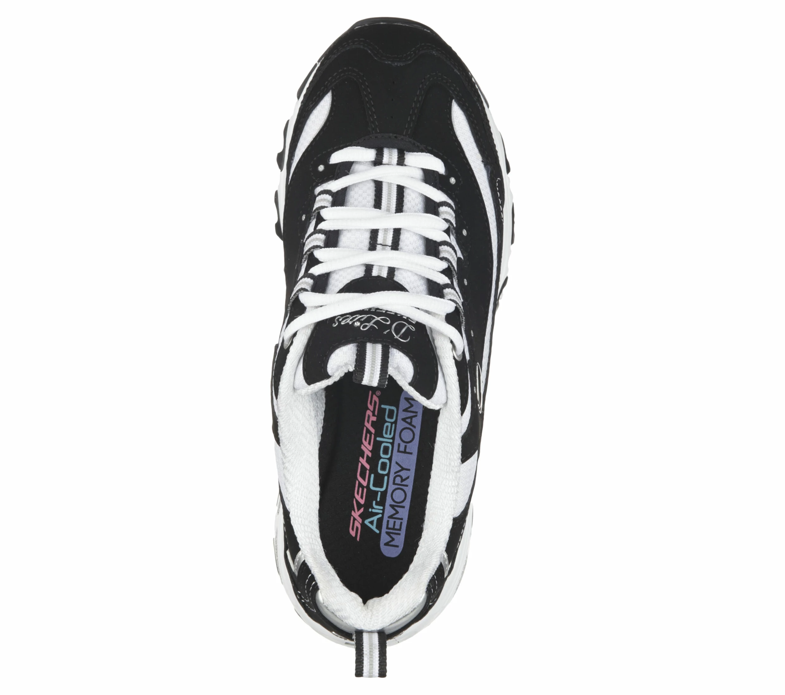 A classic look gets updated with comfort in Skechers D’Lites® – Biggest Fan. This lace-up fashion style features a trubuck leather and mesh upper with synthetic trim and cushioned Air-Cooled Memory Foam® insole.