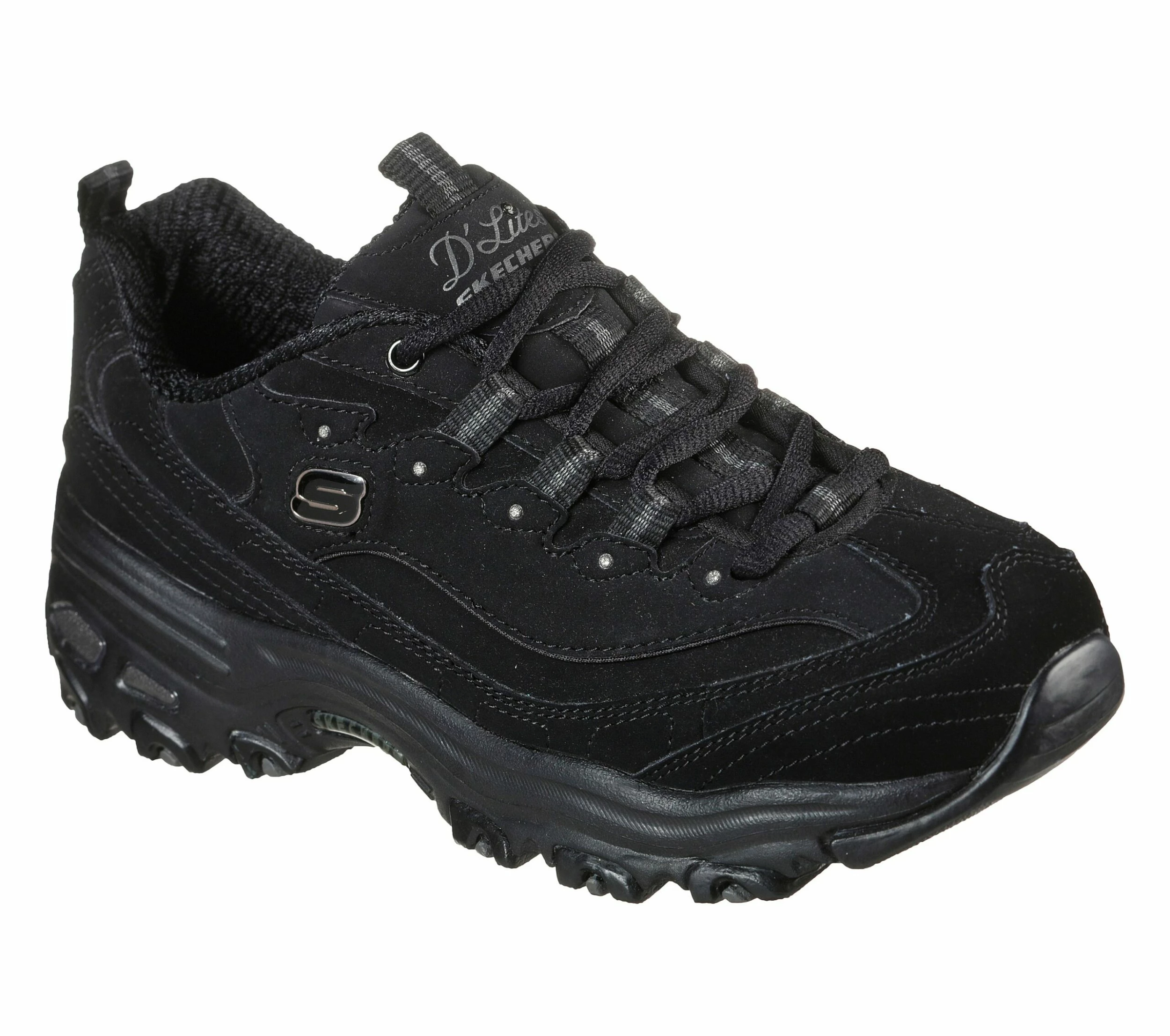 - Skechers D’Lites® sporty lace-up fashion sneaker design