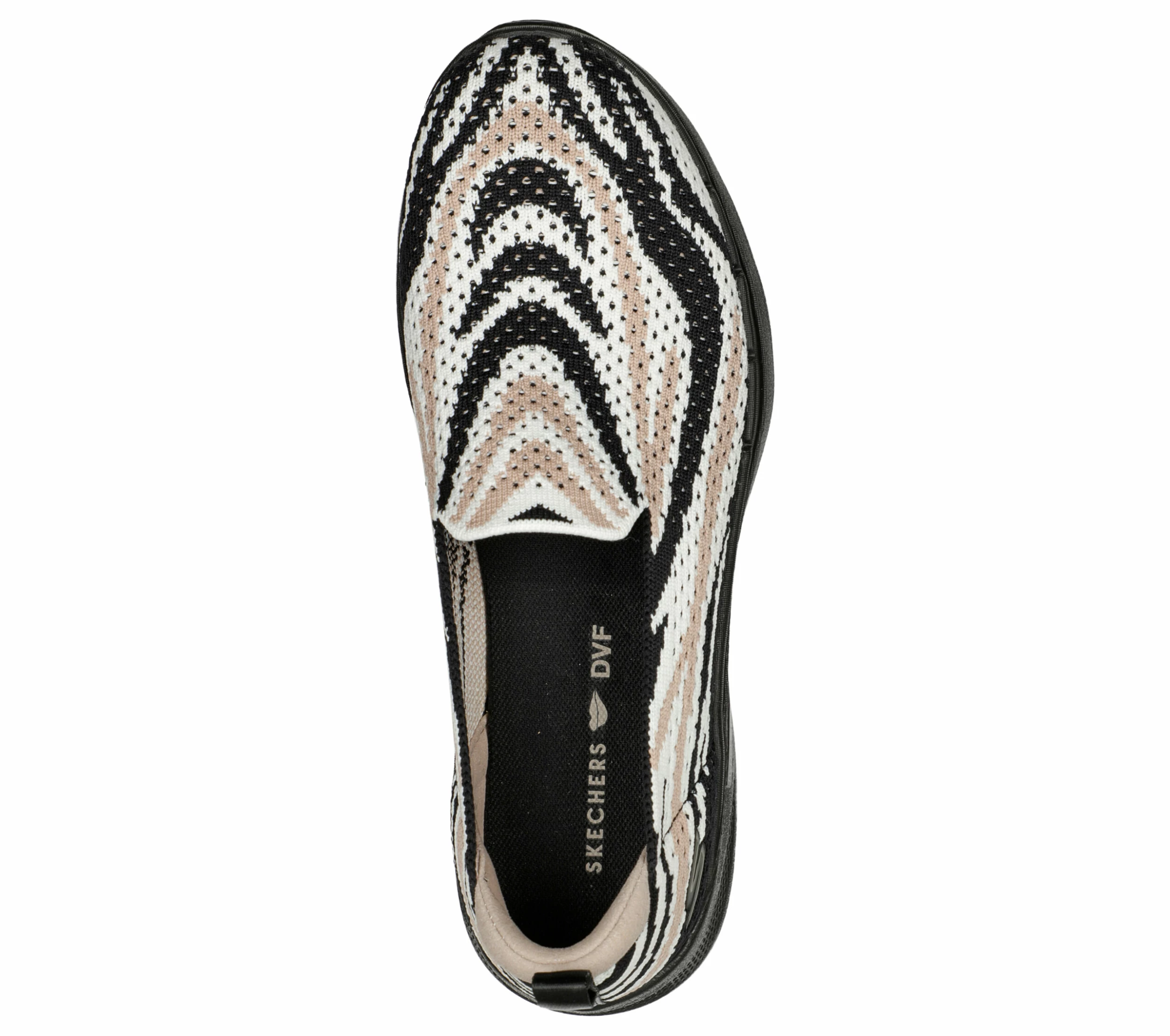Legendary fashion designer Diane von Furstenberg brings her celebrated prints to Skechers in this limited-edition collaboration. Show your love for DVF wearing Skechers x Diane von Furstenberg: GO WALK 6 – Savanna Stripes. This laceless style features the fashion house’s iconic zebra print on a mesh knit upper, Skechers Air-Cooled Goga Mat insole, lightweight ULTRA GO® cushioning midsole and high-rebound Comfort Pillar Technology® for added support.