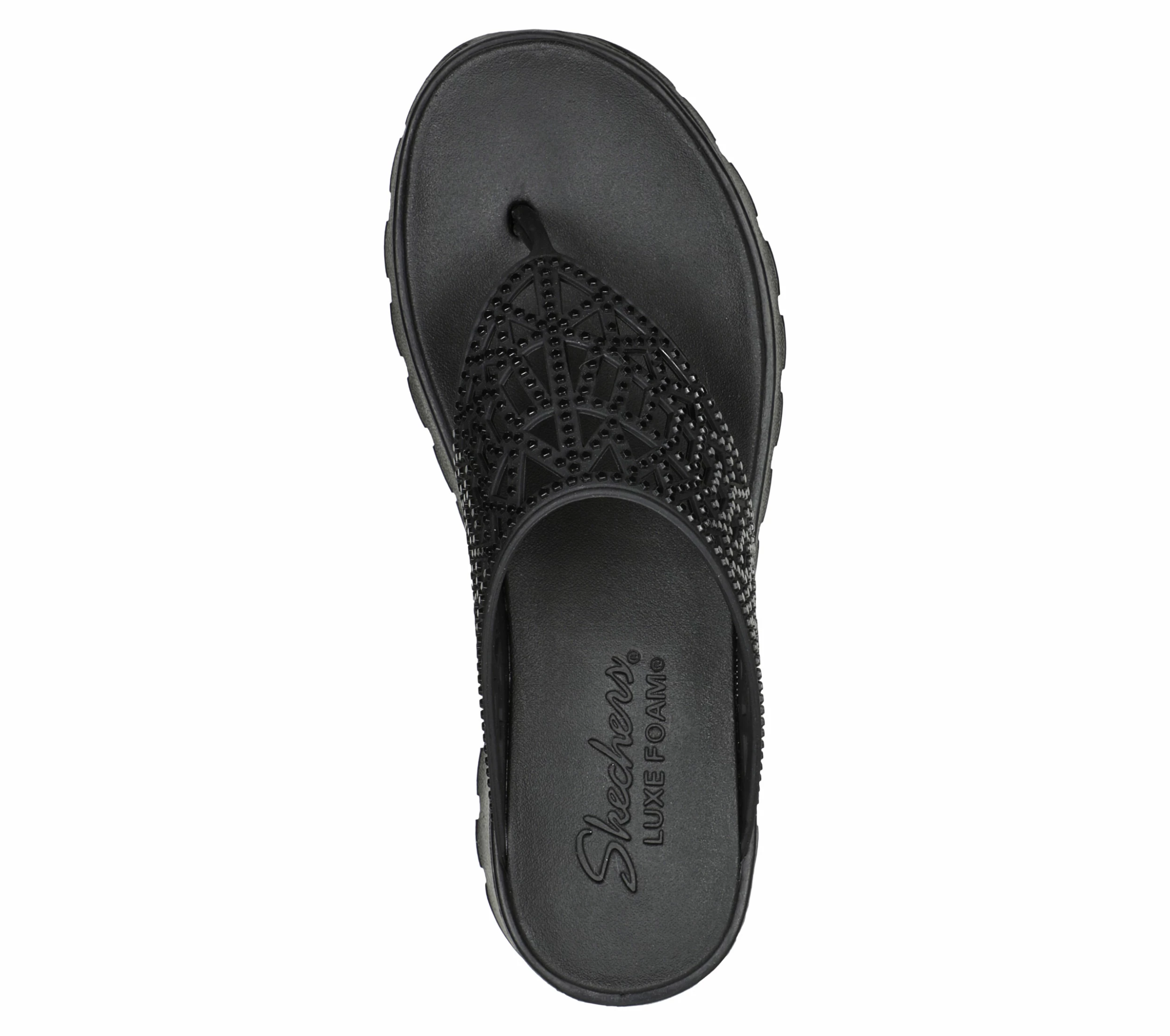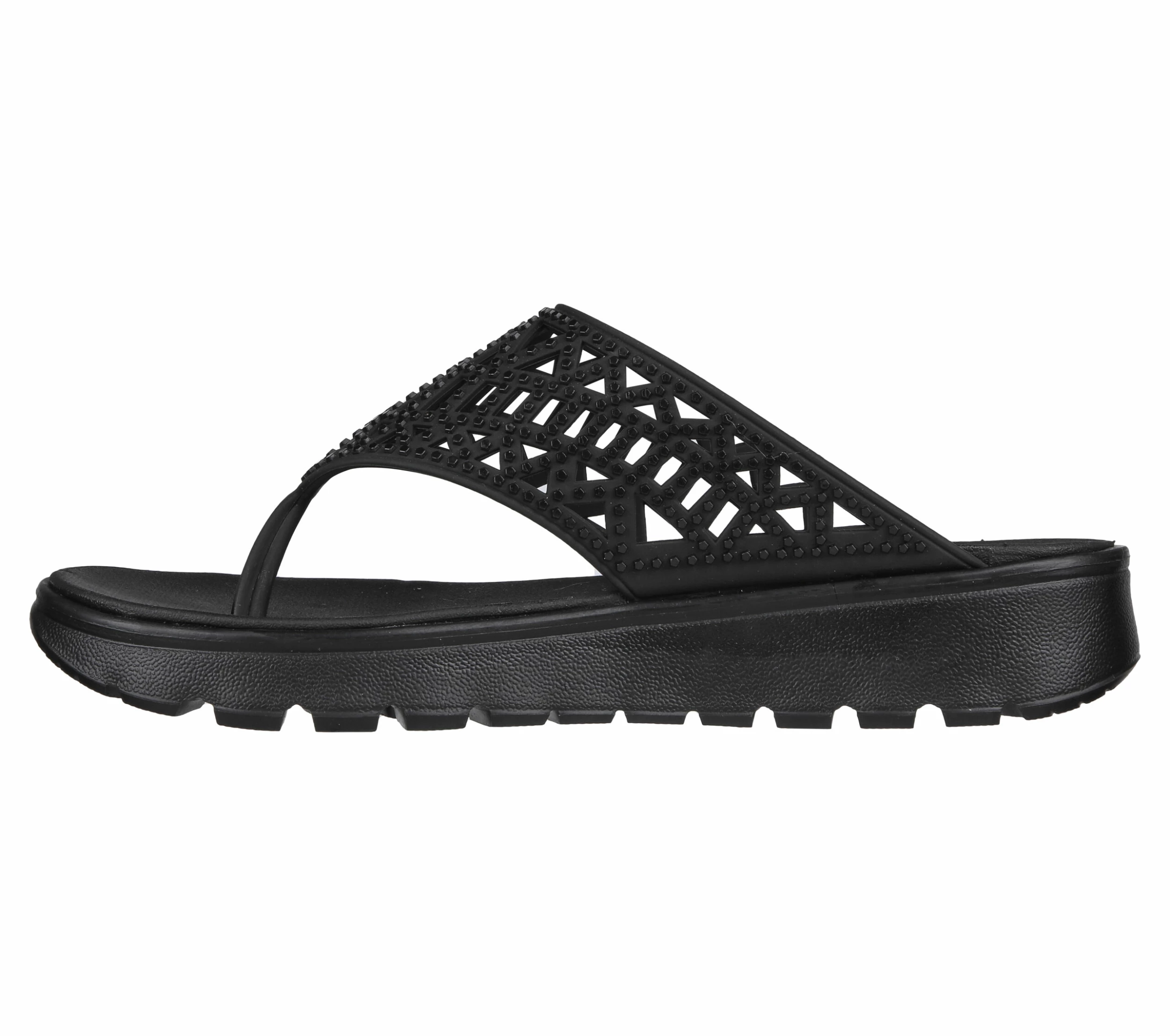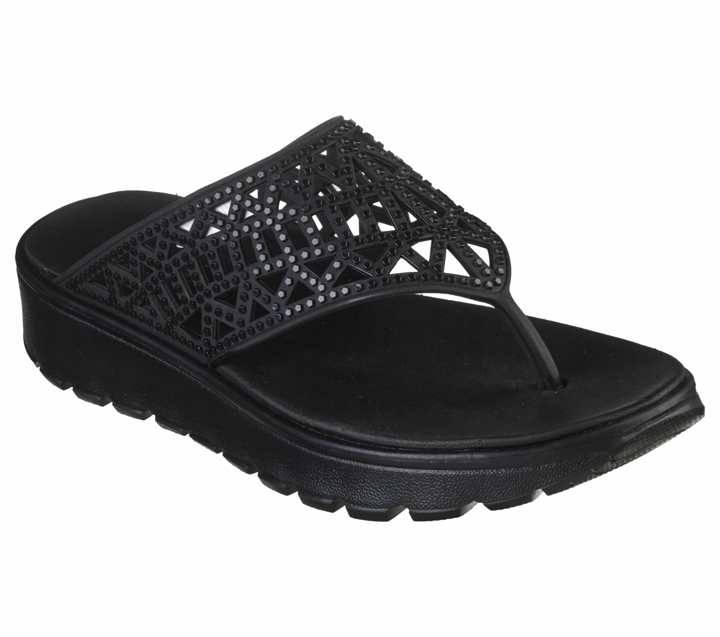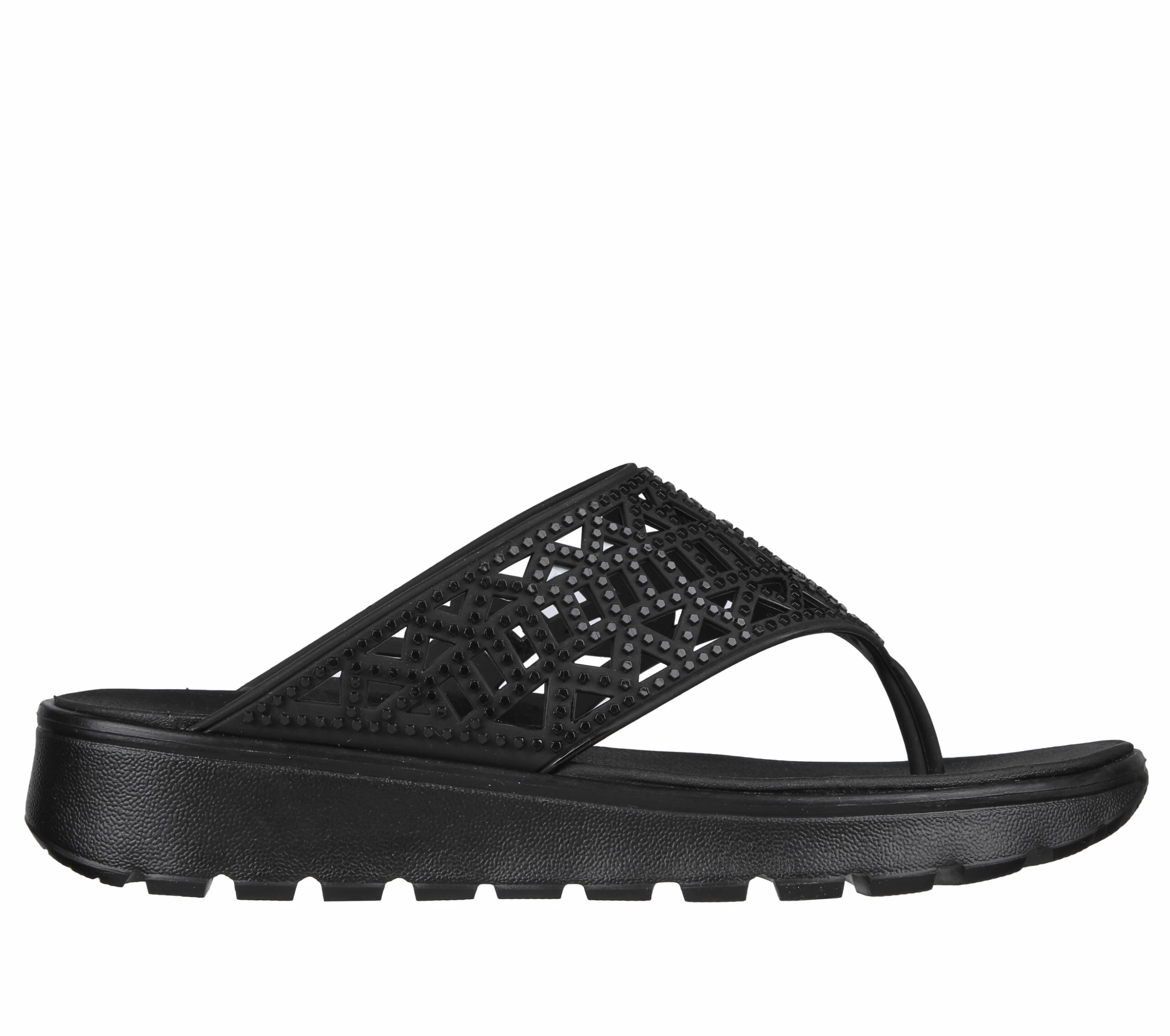 Sparkle up your summer style with Skechers Foamies®: Footsteps – She’s Cute. This casual sculpted thong sandal features a flexible EVA upper with cutout details and rhinestone embellishments, plus a contoured Luxe Foam® footbed.