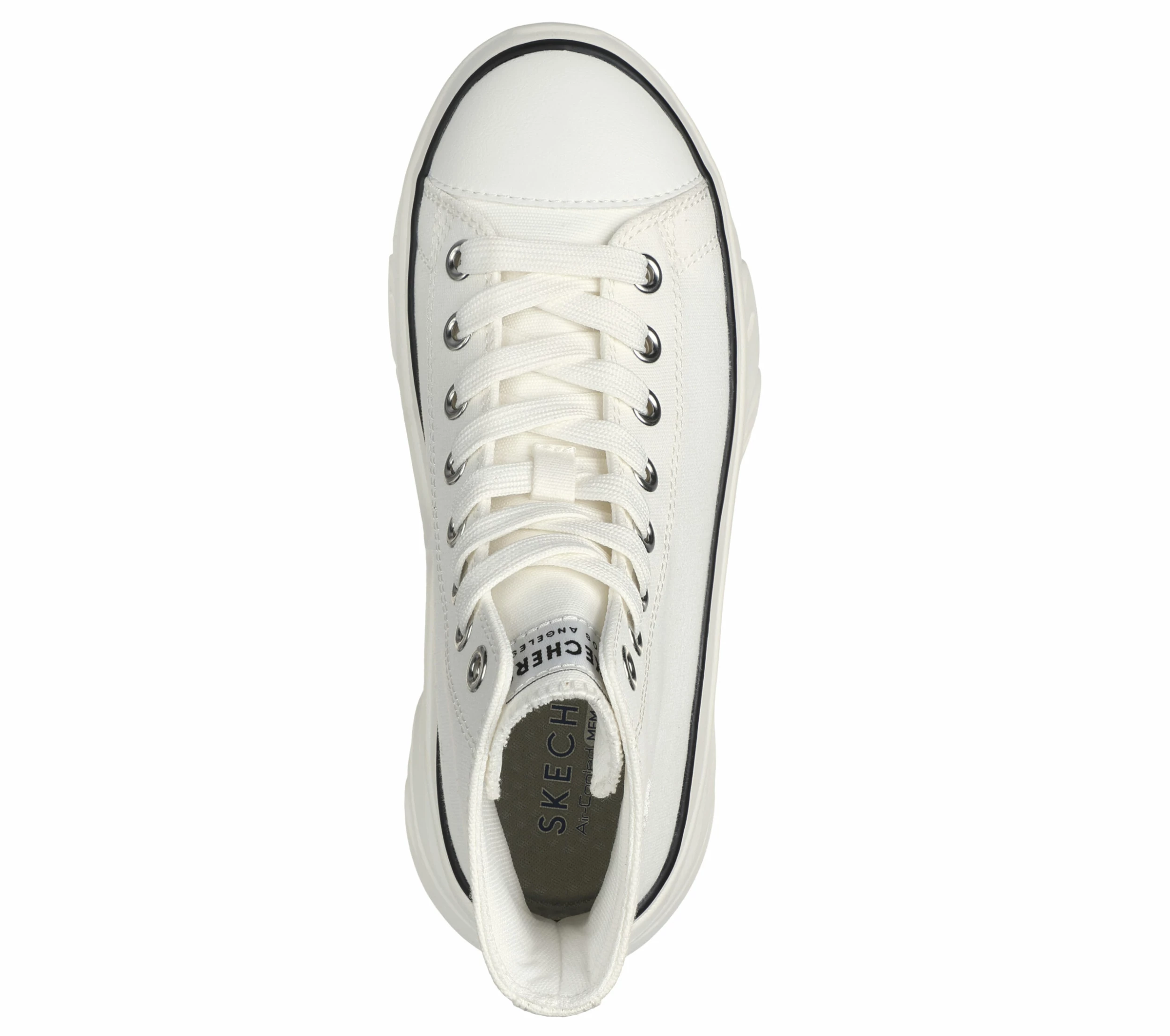 Walk the walk in stand out street style wearing Skechers Street Funky Street – Groove Way. This high-top vegan fashion sneaker features a canvas upper with a lace-up front, exaggerated platform midsole, and a Skechers Air-Cooled Memory Foam® insole.
