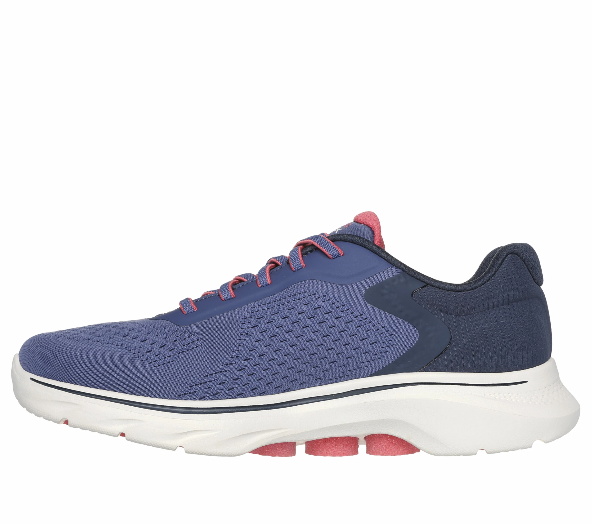 Walk in tech supported comfort with Skechers GO WALK 7 – Cosmic Waves. This vegan walking style features an engineered mesh upper with a stretch-laced upper, Skechers Air-Cooled Goga Mat insole, lightweight ULTRA GO® cushioning, and high-rebound Hyper Pillar Technology for added support.