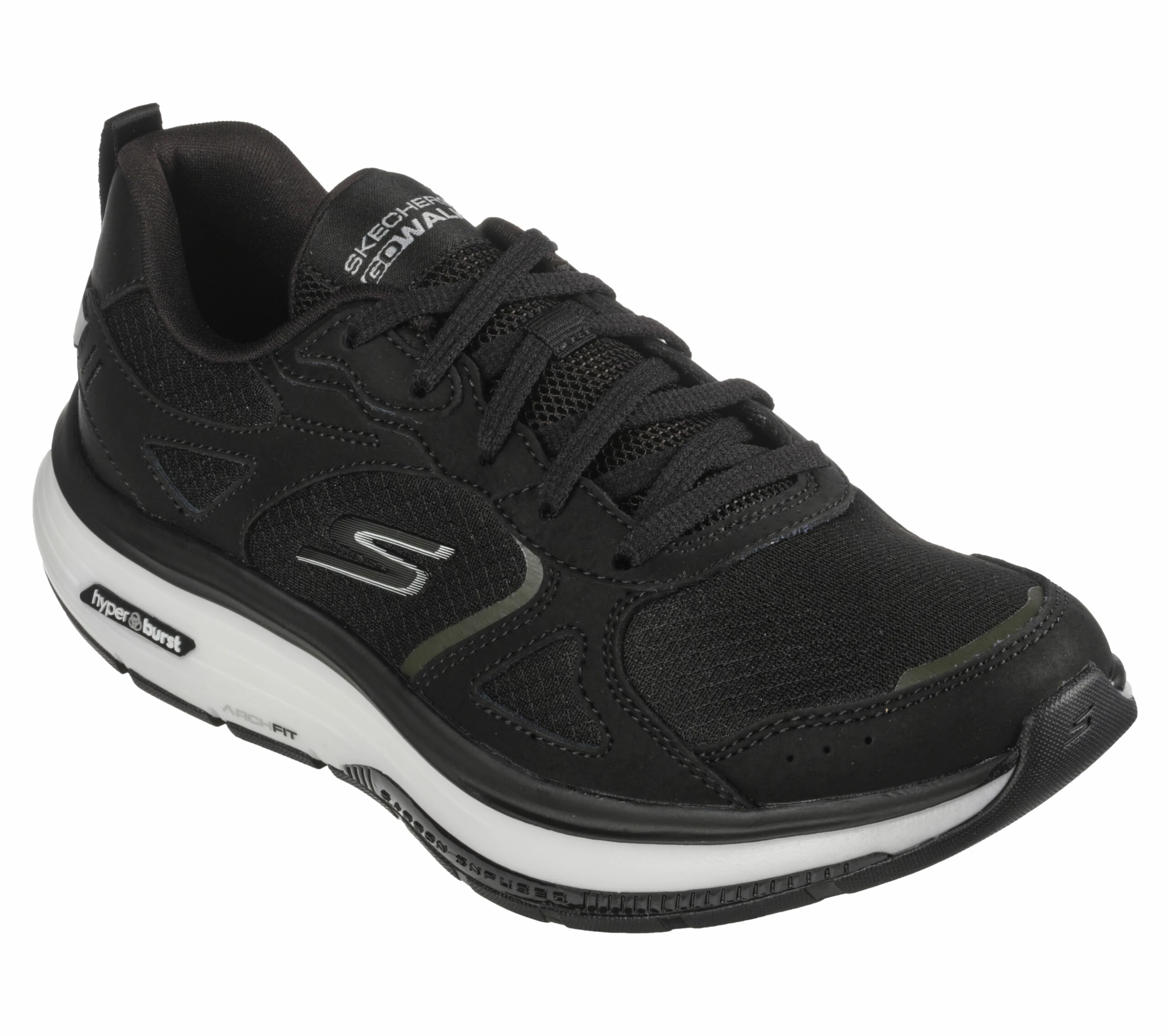 Enhance your steps with advanced comfort wearing Skechers GO WALK Workout Walker. This lace-up features a carbon infused design in a leather, mesh and synthetic upper with a removable Skechers Arch Fit® insole, Hyper Burst® cushioning and a Goodyear® Performance Outsole.
