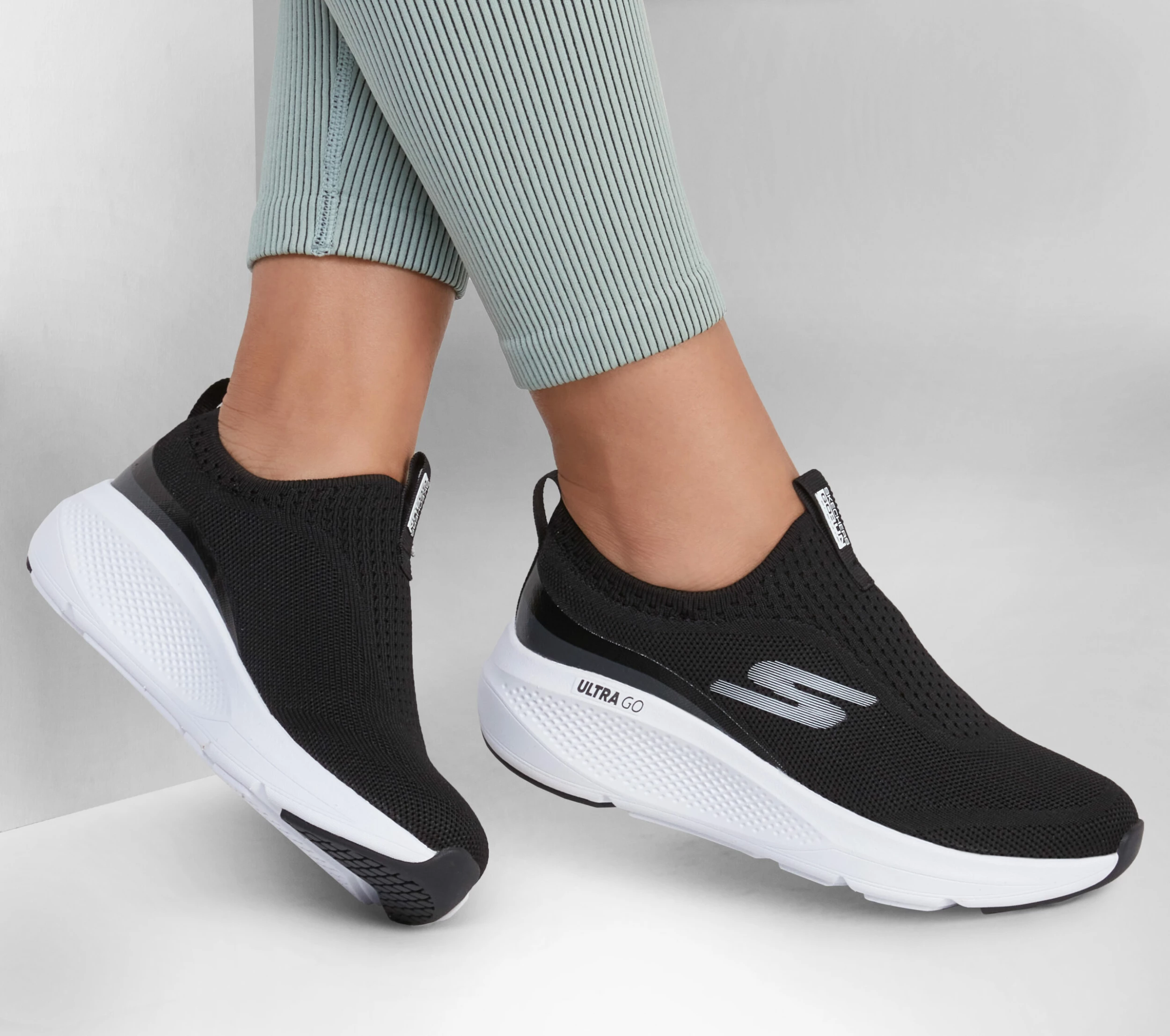 Workout in comfort with a shoe that keeps up with you wearing Skechers GO RUN Elevate – Hot Streak. This pull-on design features a breathable athletic mesh upper with an Air-Cooled Goga Mat comfort insole and lightweight ULTRA GO® cushioned midsole.