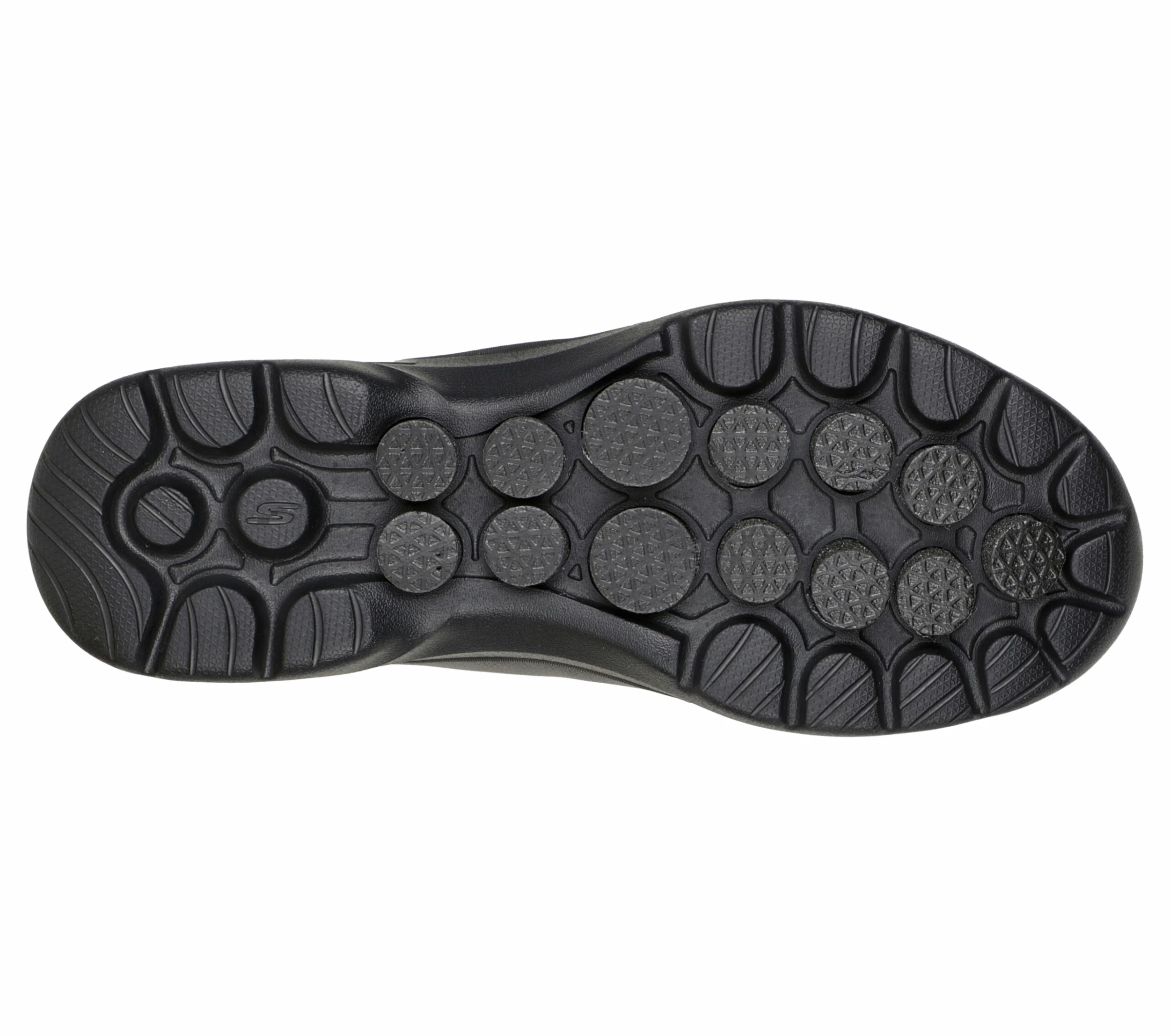 Walk in easy-wearing comfort with Skechers GO WALK 6 – Dorin. This laceless fit design features a smooth leather upper with lightweight ULTRA GO® cushioning, an Air-Cooled Goga Mat insole and high-rebound Hyper Pillar Technology for added support.