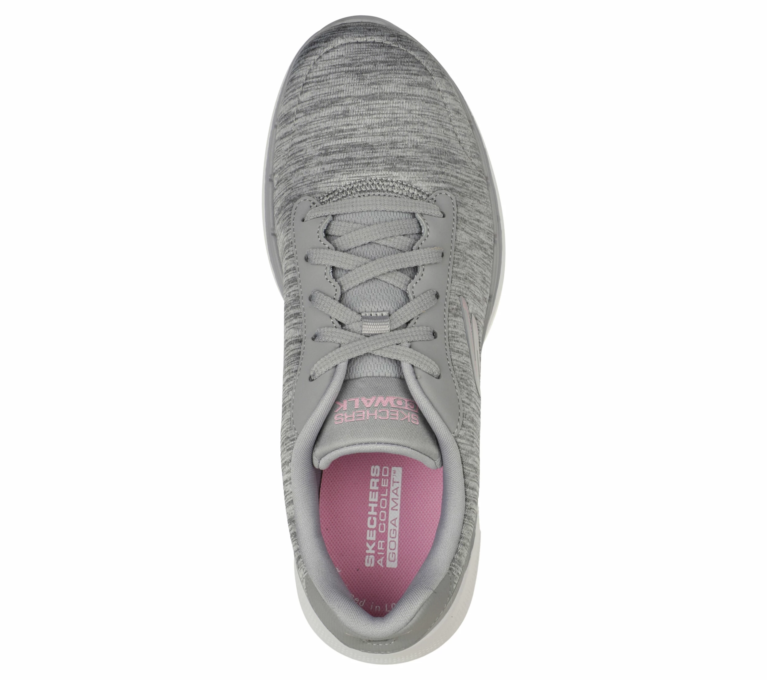 Enjoy fine-tuned comfort during your daily walks with Skechers GO WALK® 6 – Magic Melody. This lace-up features a heathered mesh upper with an Air-Cooled Goga Mat insole, lightweight ULTRA GO® cushioning midsole and high-rebound Hyper Pillars® for added support.