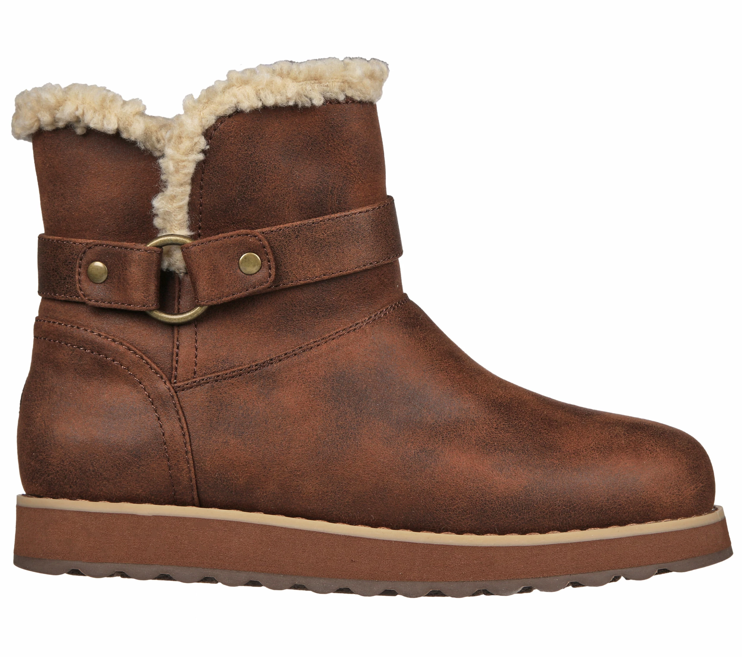 Stay warm and stylish throughout chilly season in Skechers Keepsakes 2.0 – Home Sweet Home. This slip-on cold-weather boot features a 3M® Scotchgard® treated synthetic microleather upper with a sherpa trim and a cushioned Skechers Warm Tech Memory Foam insole.
