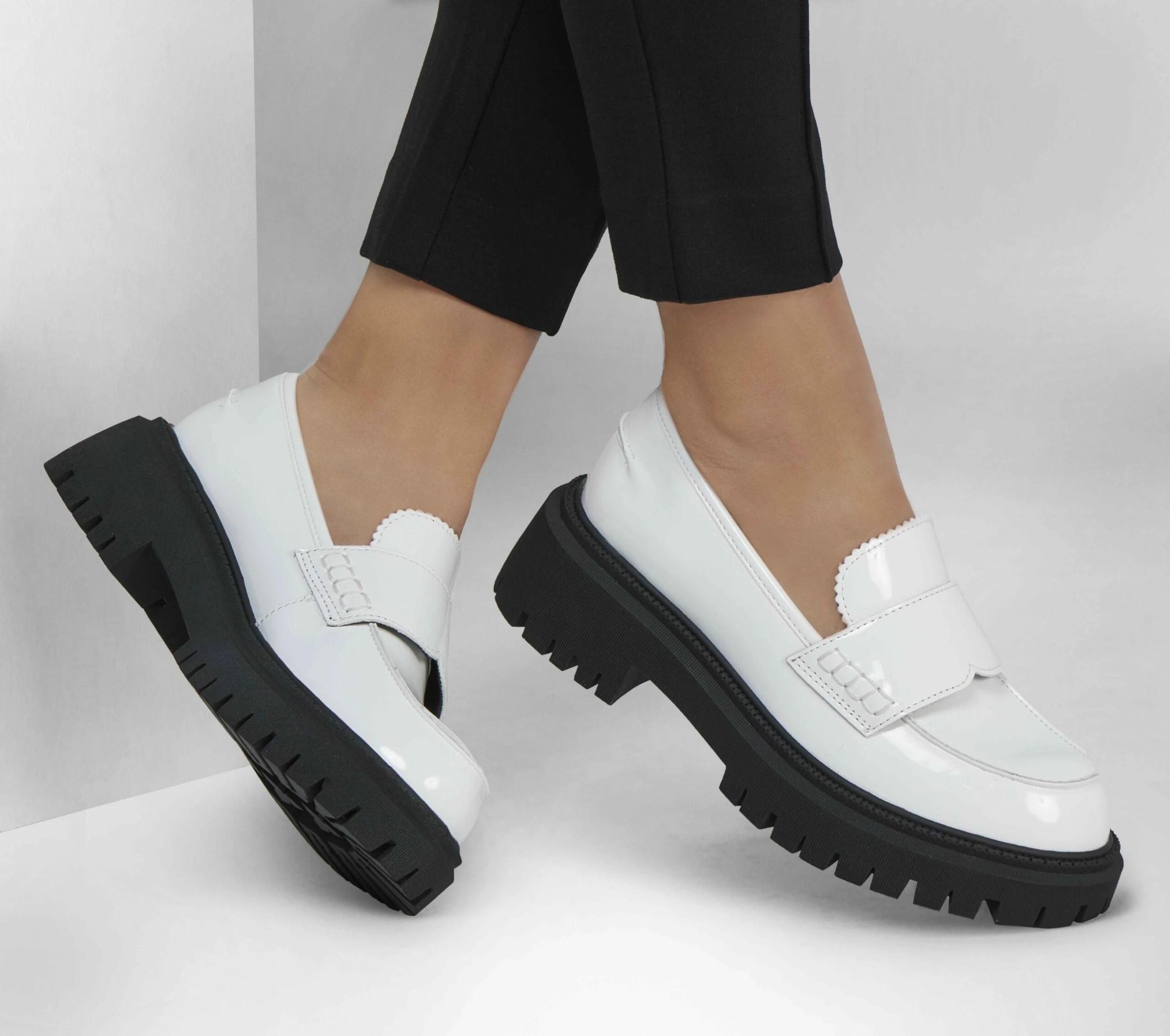 From the office to the everyday dress, style your look with the versatile Modern Rugged – Your Sweetness. This vegan penny loafer features a synthetic patent upper with a cushioned Skechers Memory Foam insole and a rugged lug outsole. NOTE: It is recommended to order these one full size down from your regular size