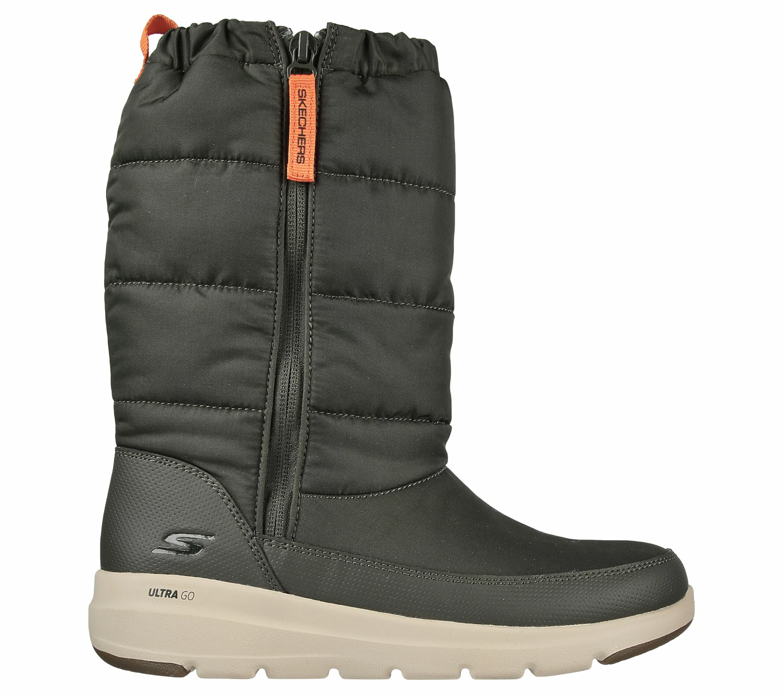 Stay warm throughout the season with Skechers On-the-GO Glacial Ultra – Wintertime. This cold-weather puffer boot features a woven fabric upper with an exposed side zip closure, Skechers Air-Cooled Goga Mat insole and lightweight ULTRA GO® cushioning.