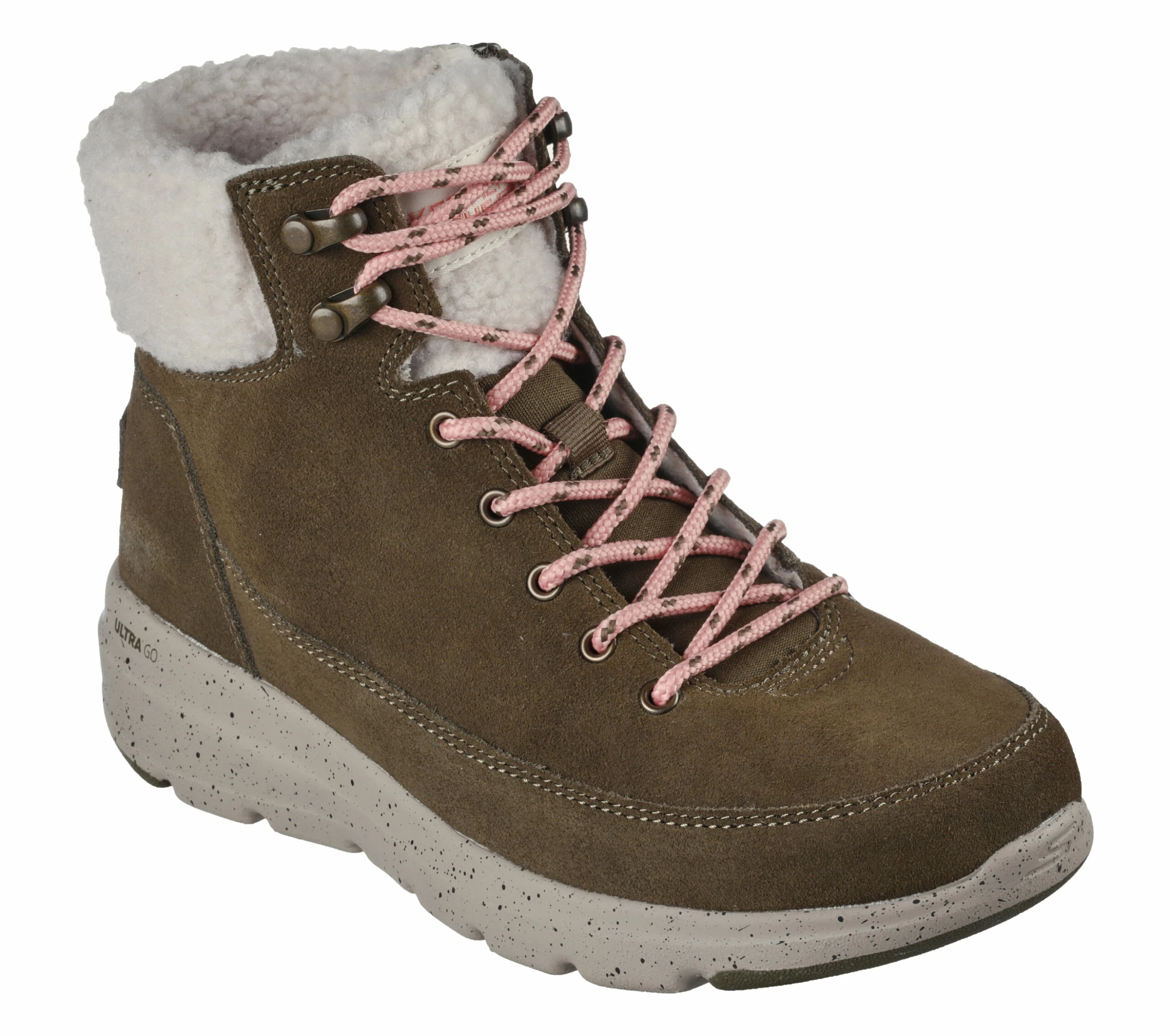 Stay warm throughout the season with Skechers On-the-GO® Glacial Ultra – Woodsy. This cold weather lace-front boot features a 3M® Scotchgard® treated suede upper with sherpa lining, a Skechers Air-Cooled Goga Mat insole, a speckled lightweight ULTRA GO® midsole, plus a side zipper for ease of wear.