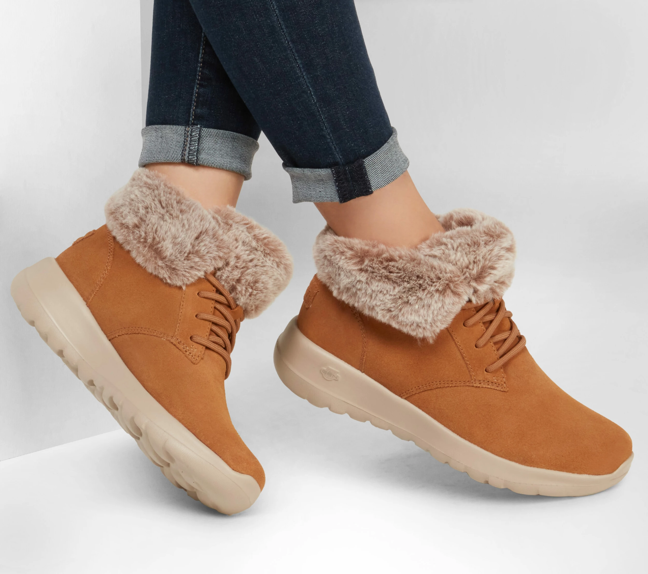 Laid-back style and cozy comfort combine in Skechers On-the-GO Joy – Plush Dreams. This pull-on cold-weather boot features a Scotchgard® treated suede upper with a faux-fur collar, Skechers Air-Cooled Goga Mat insole and lightweight 5GEN® cushioned midsole.