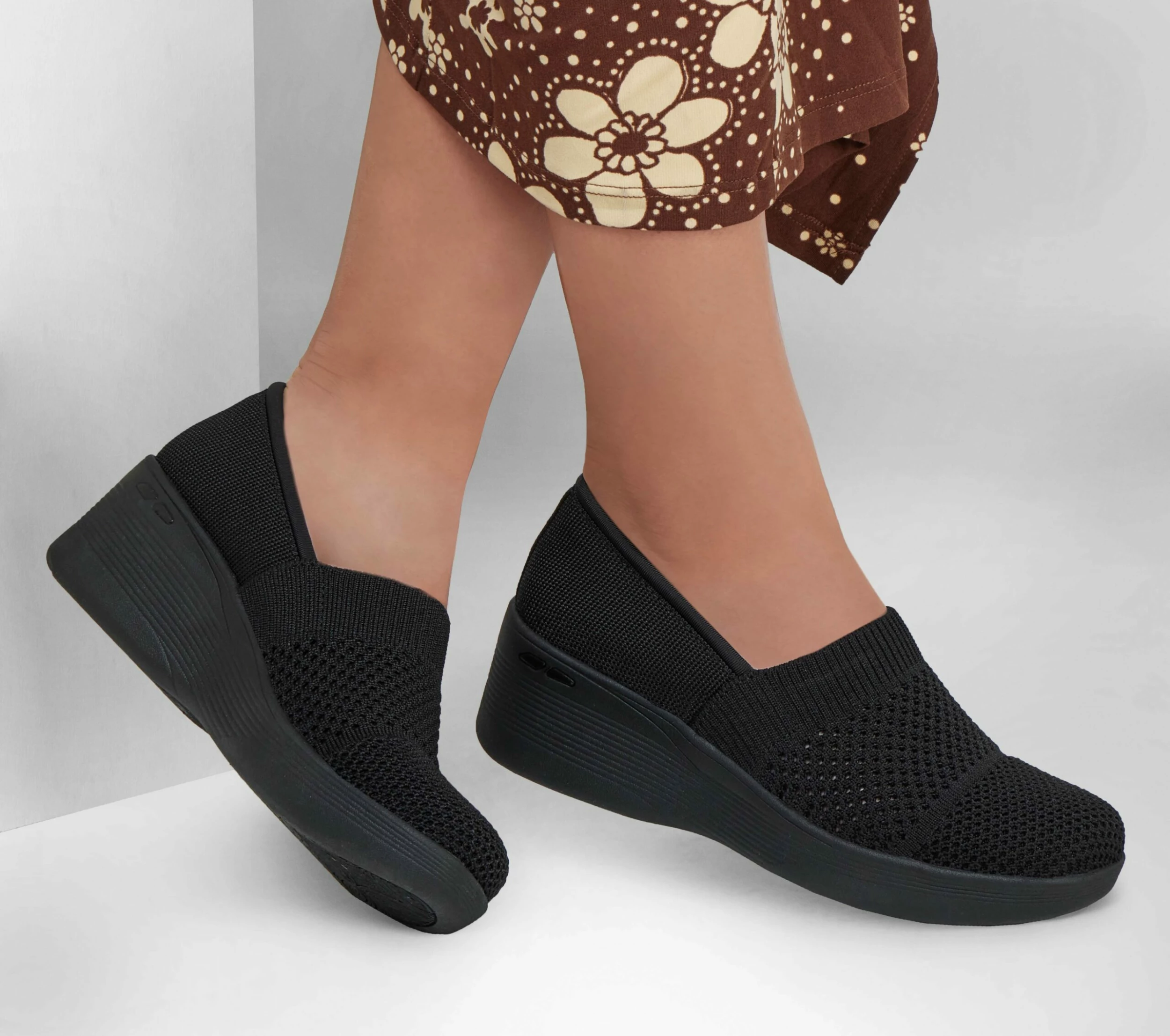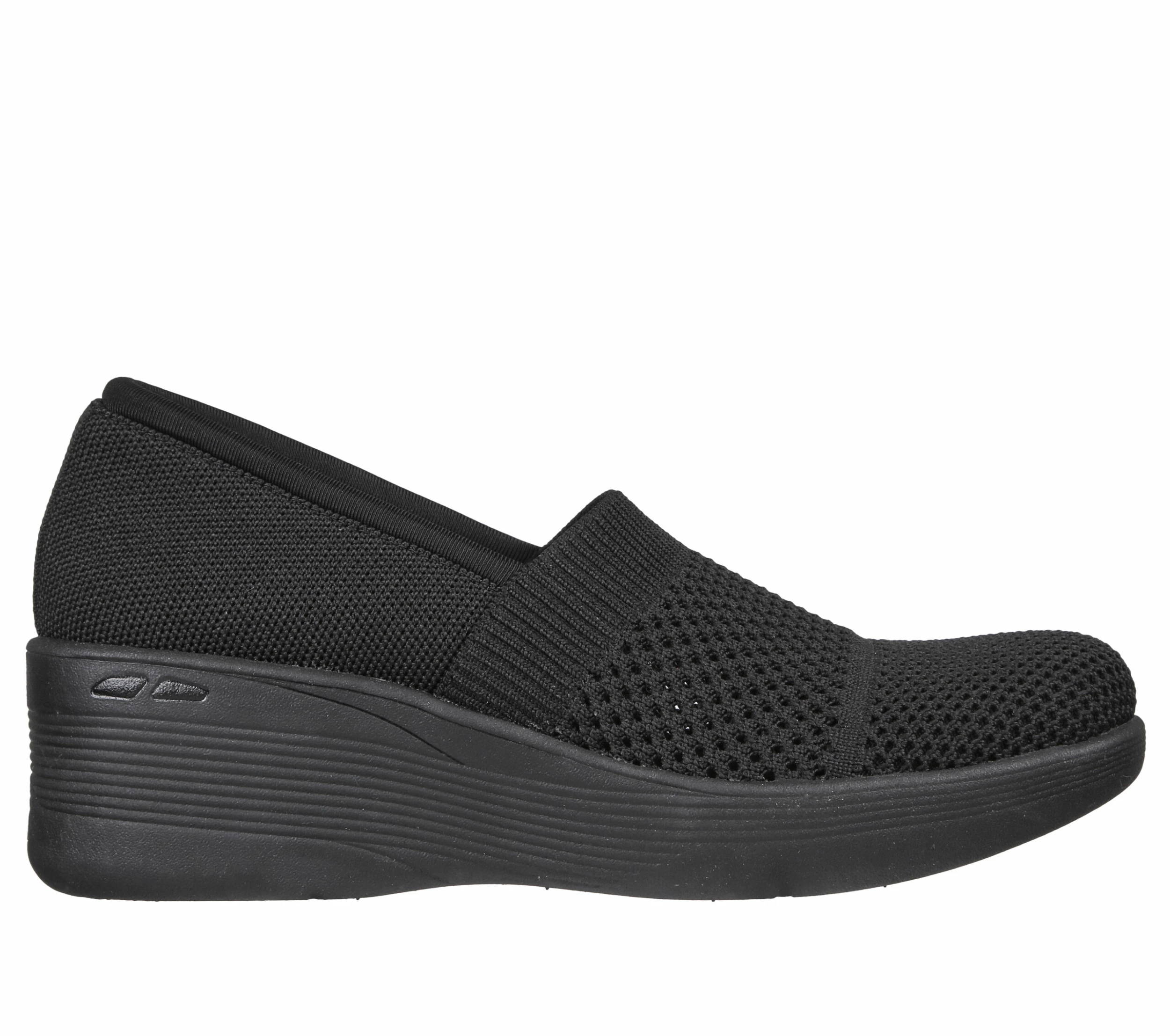 Slip on stylish all-day comfort with Skechers Pier-Lite – Wow Factor. Featuring a Stretch Fit® heathered engineered knit upper with a Skechers Air-Cooled Foam Memory® comfort insole and wedge heel.