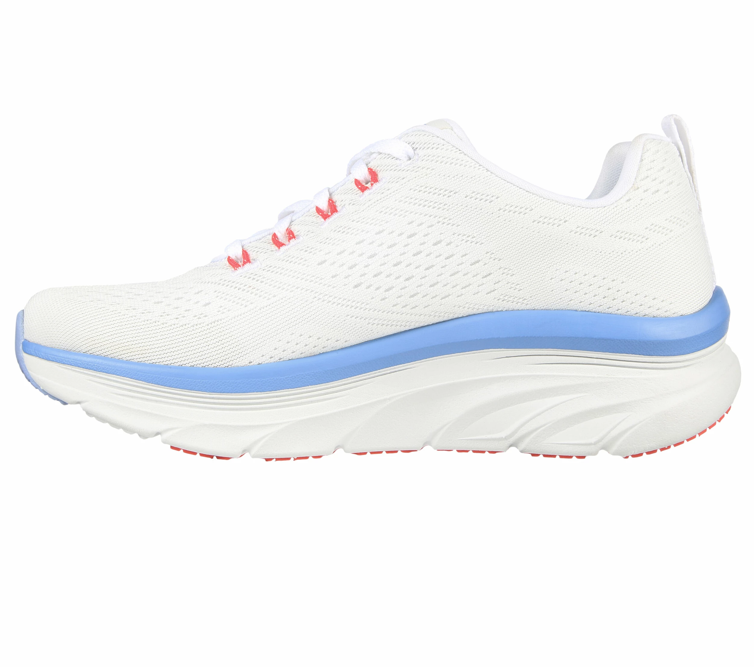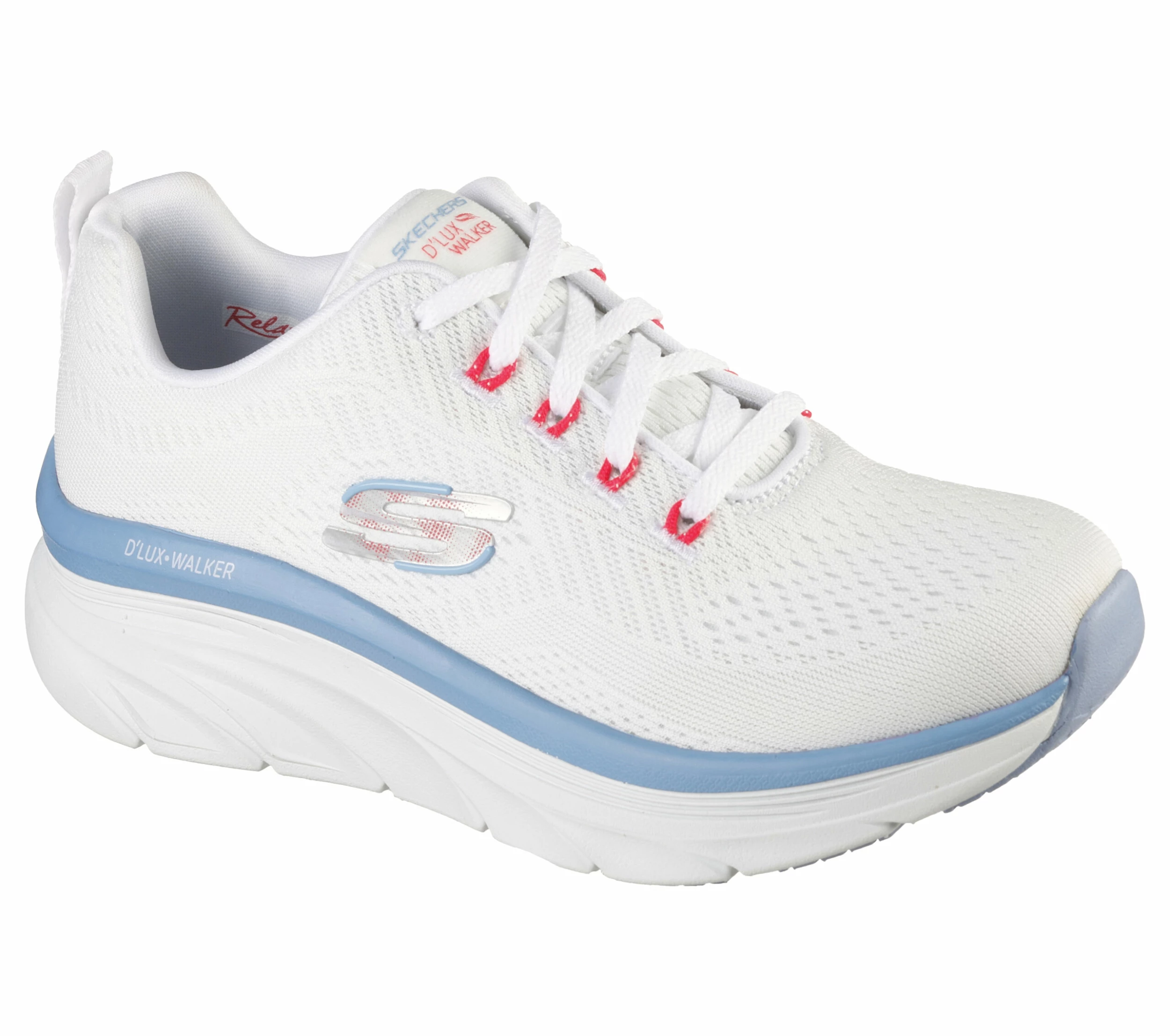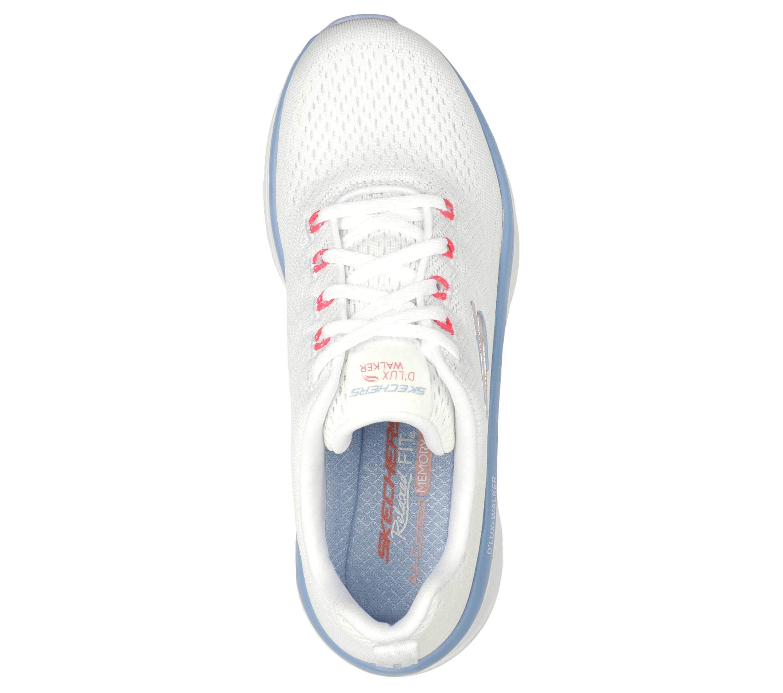 Step up your walks with a boost of well-cushioned comfort wearing Skechers Relaxed Fit®: D’Lux Walker – Fresh Finesse. This lace-up features an engineered mesh upper with a Skechers Air-Cooled Memory Foam® insole and a cushioned platform midsole.
