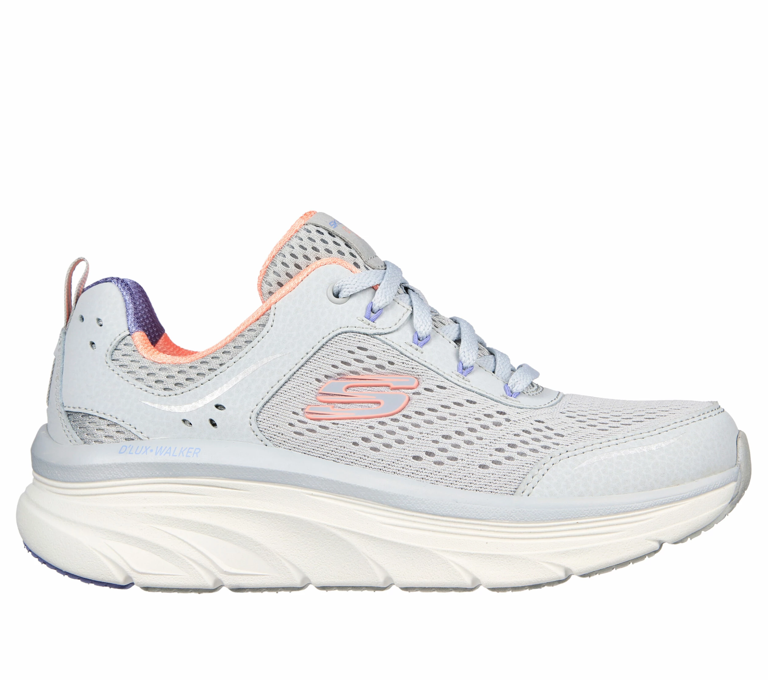 Amazing supportive comfort goes a long way with the Skechers Relaxed Fit: D’Lux Walker – Infinite Motion shoe. This athletic lace-up walking sneaker features a smooth leather and soft engineered mesh upper with an Air-Cooled Memory Foam comfort insole and a well-cushioned Skech-Foam midsole.