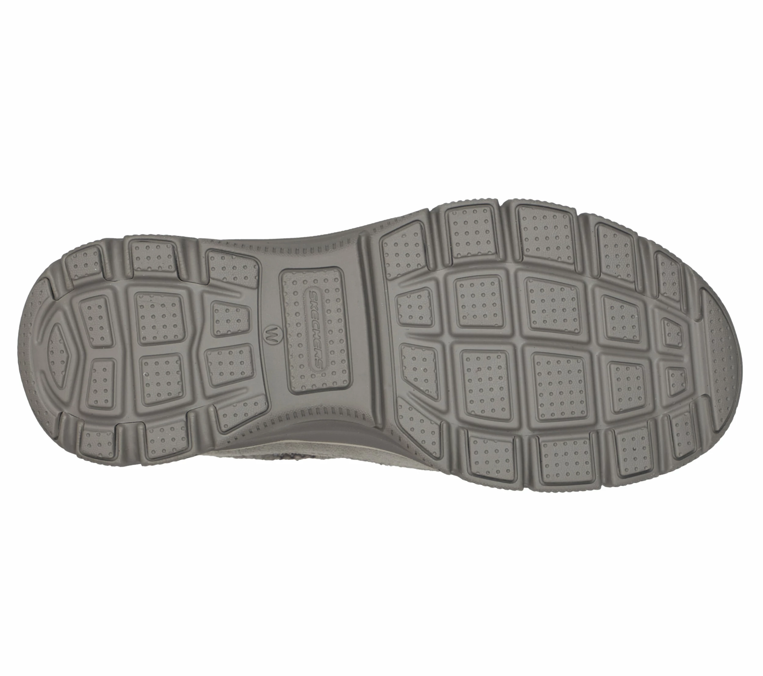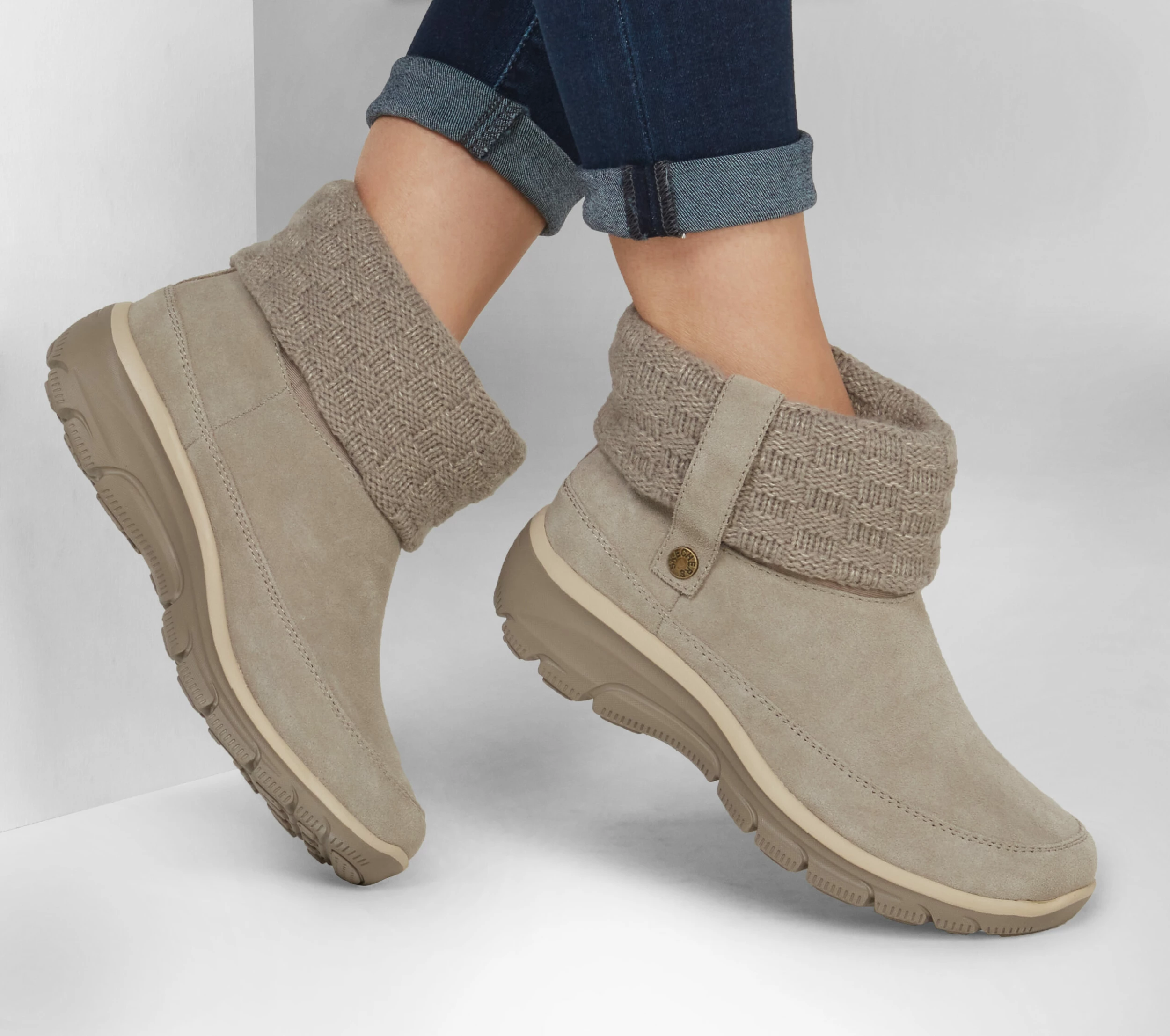 Elevate your style in cozy comfort with Skechers Relaxed Fit®: Easy Going – Upgraded Heights. This slip-on ankle boot features a water-repellent suede and sweater knit upper with a Skechers Air-Cooled Memory Foam® cushioned insole.