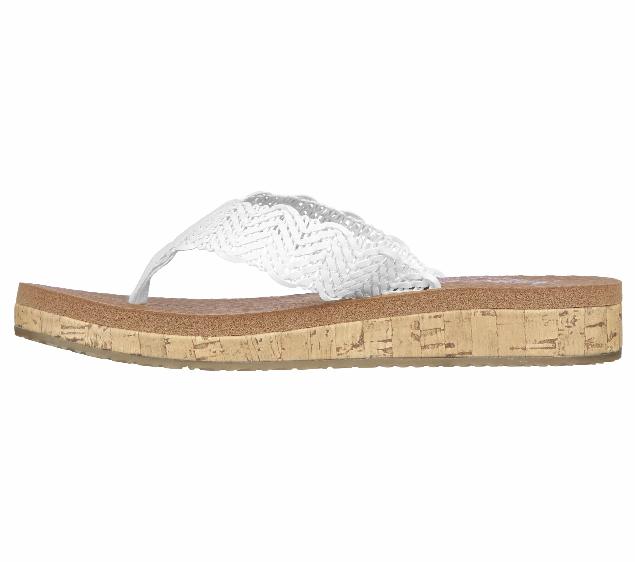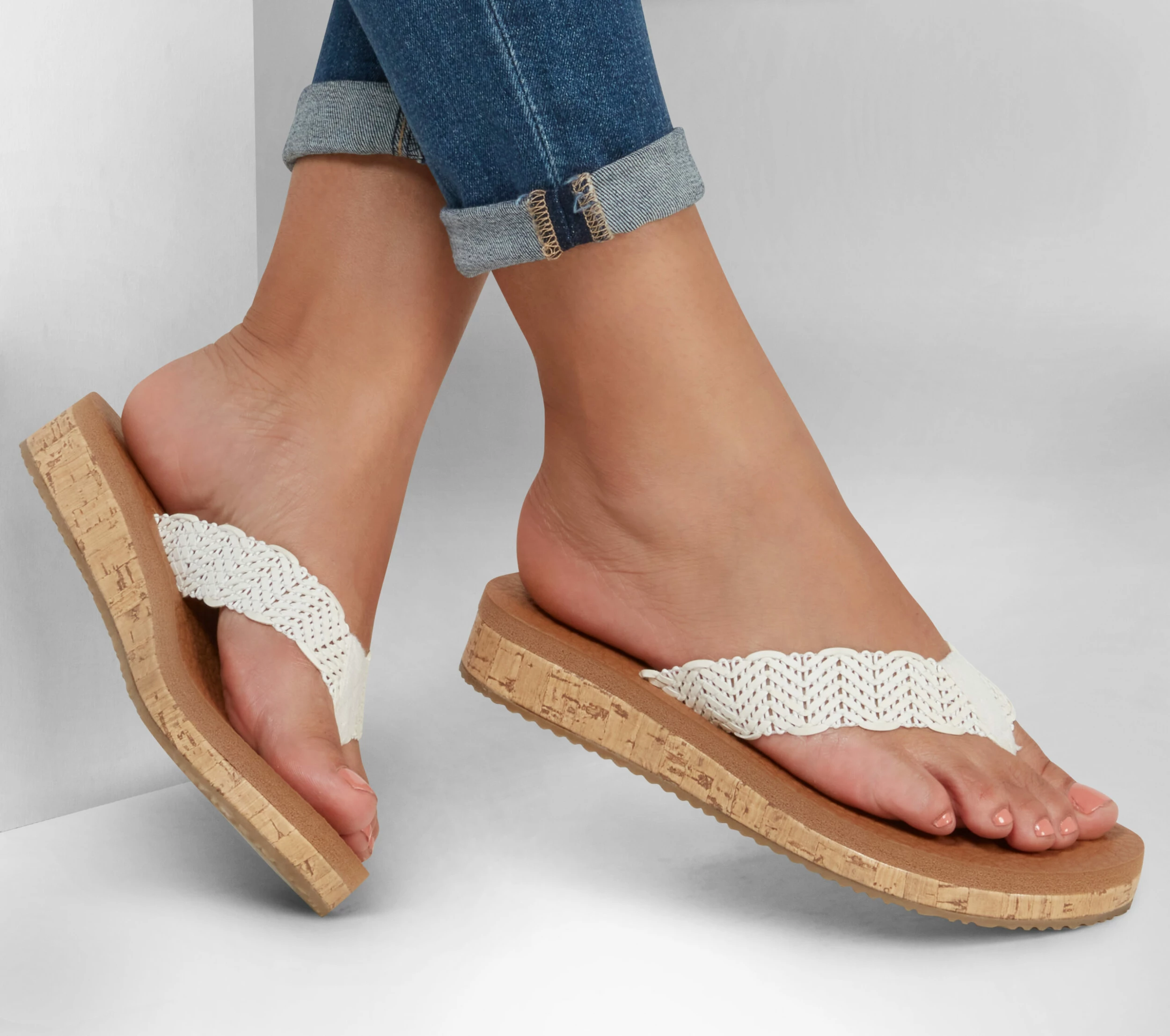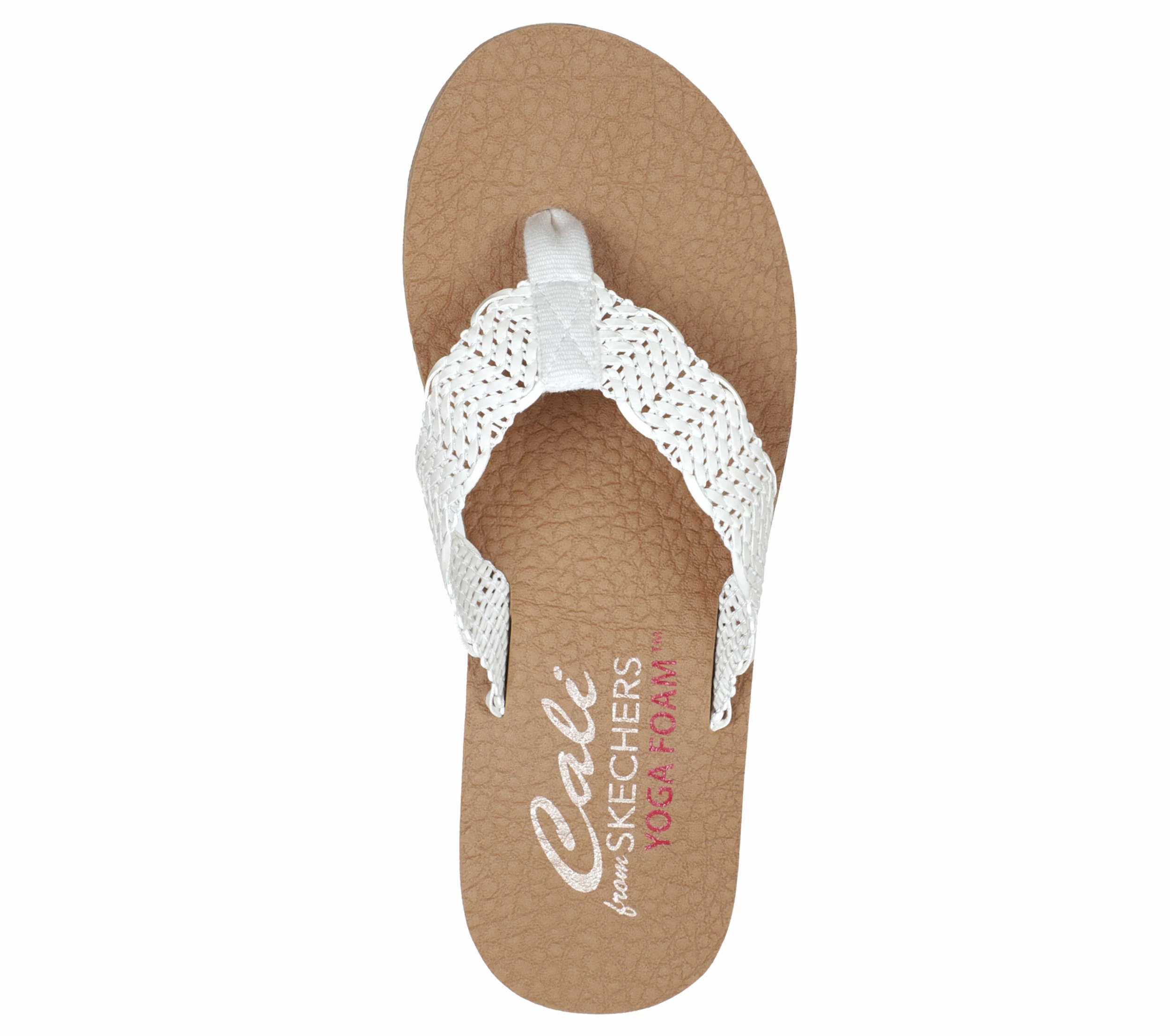 Walk with beachside style and comfort in Skechers Cali® Sandcomber. This casual thong sandal features a synthetic open-weave upper with a Yoga Foam comfort footbed.