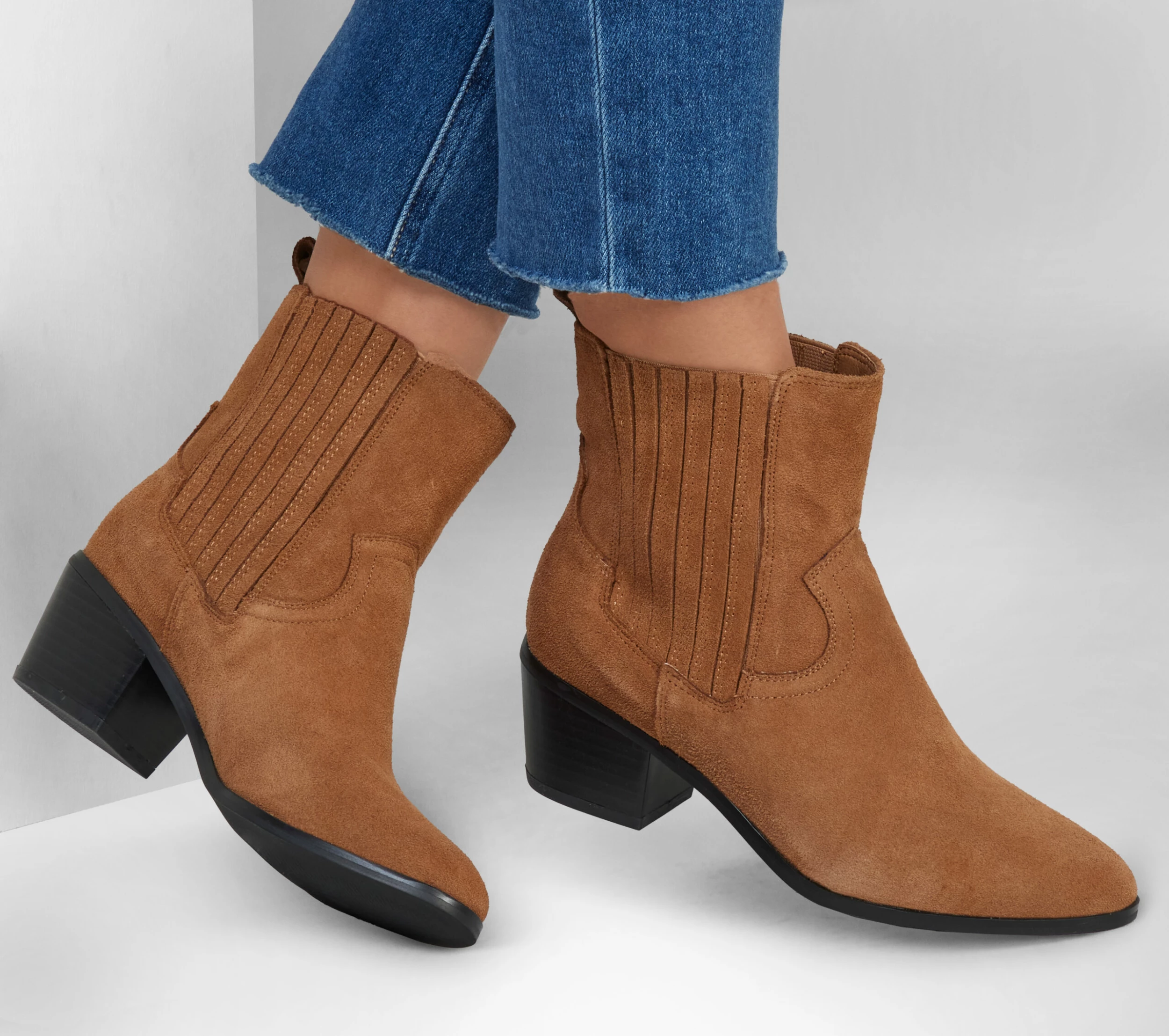 Discover a new range of stylish comfort with Skechers Tameless – Moving West. This western inspired pull-on ankle boot features a genuine suede upper with a cushioned Skechers Memory Foam insole.